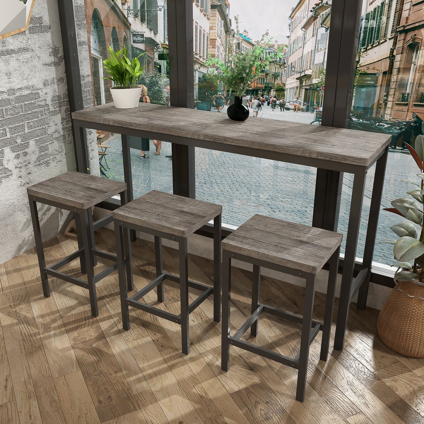Modern Design Kitchen Dining Table Set with 3 Stools, Easy Assembly, Brown Gray, MDF and Metal