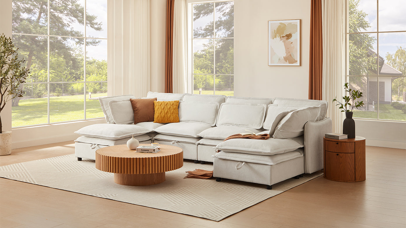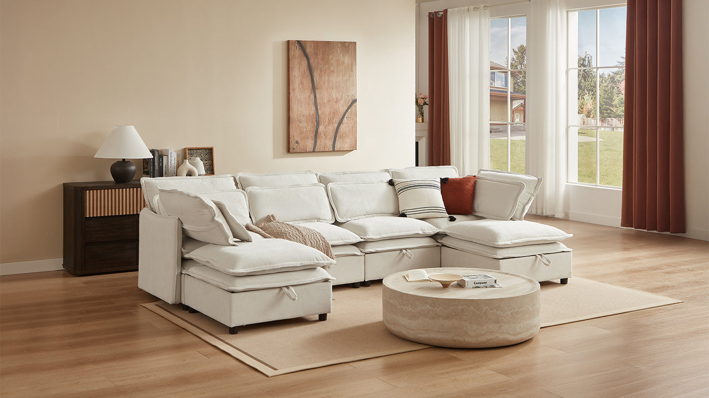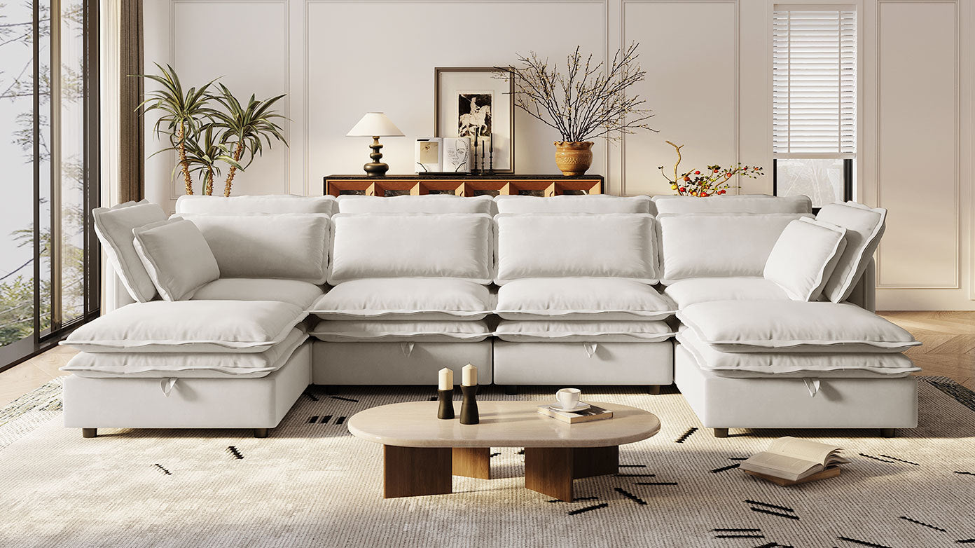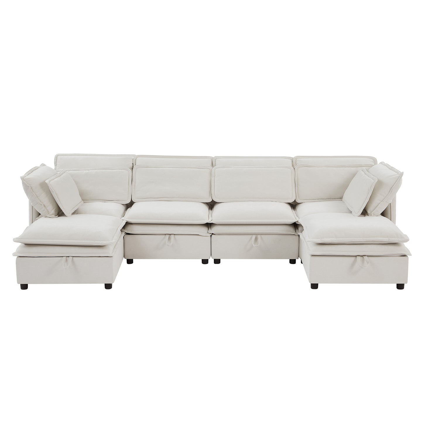 U_Style Double-Layer Cushion Modern Large U-Shaped Modular Sofa, Freely Combinable 6-Seater with Storage Function, Convertible to Sofa Bed, Perfect for Living Rooms, Offices, and Apartments