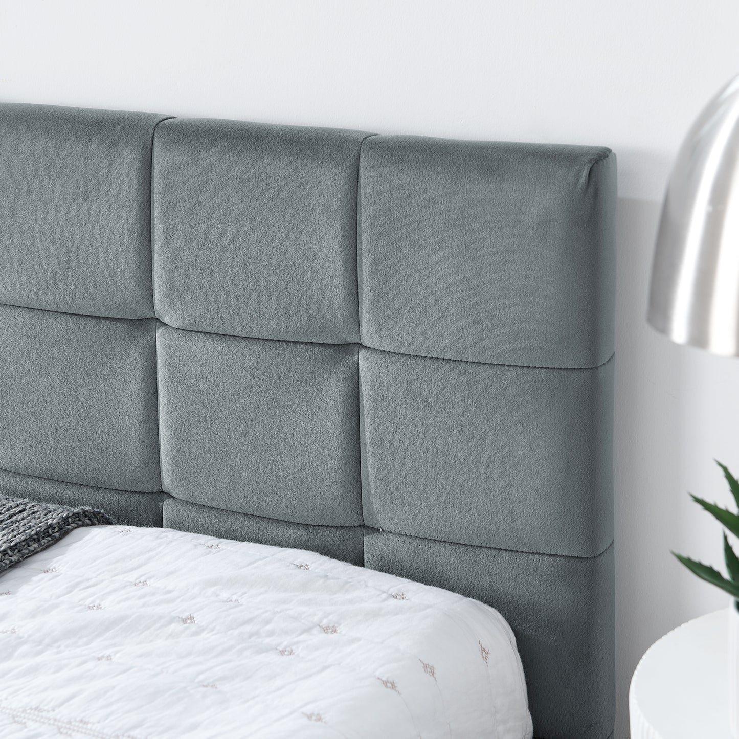 Velvet Grey Full Size Upholstered Tufted Bed Frame with Backrest and Armrests, 80.5''*59''*30.5''