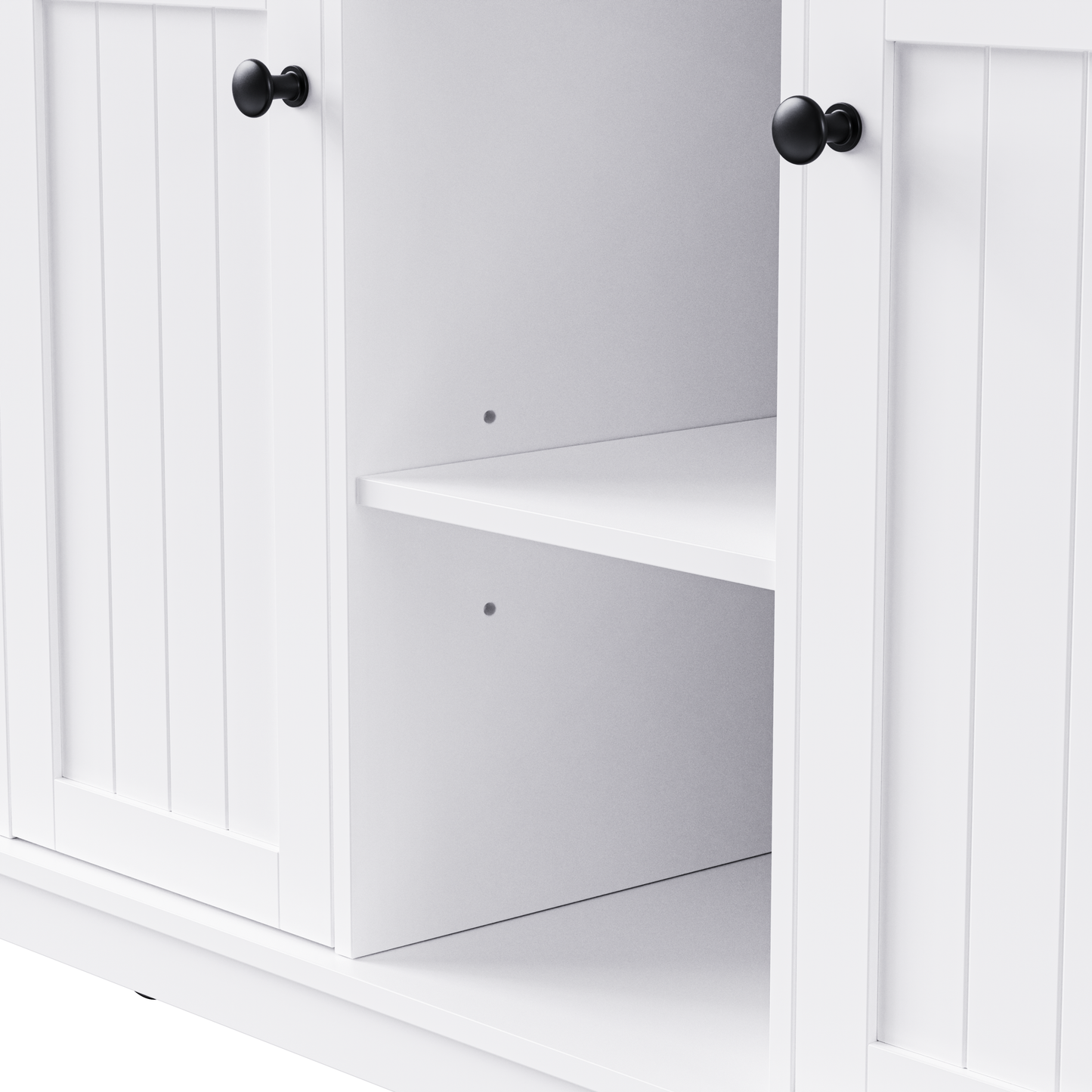 - [Internal Storage Racks] Our rolling kitchen island is designed with an internal storage rack inspired by the functionality of refrigerator doors. The two barn doors all feature 2-tier shelf racks, providing easy access to soy sauce, barbecue sauce, and other condiments, and sticks that can keep things from falling. This design effectively optimizes storage capacity while occupying minimal space, making it an ideal addition to kitchens, dormitories, offices, bedrooms, and dining areas.