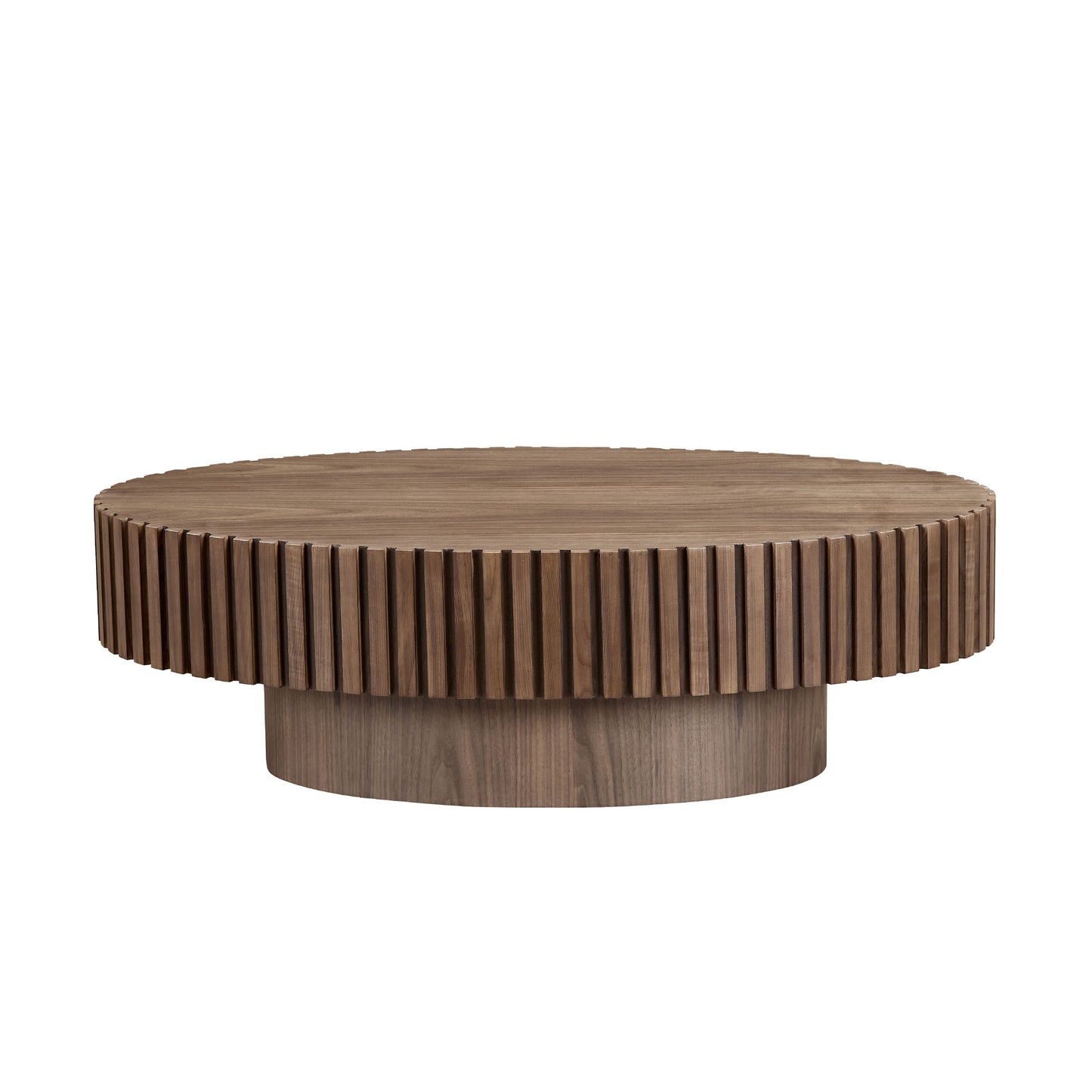 Modern Handcraft Drum Coffee Table Length 43.7 inch Ellipse Coffee Table for Living Room,Oval Small Coffee Table with Sturdy Pedestal,Walnut MDF