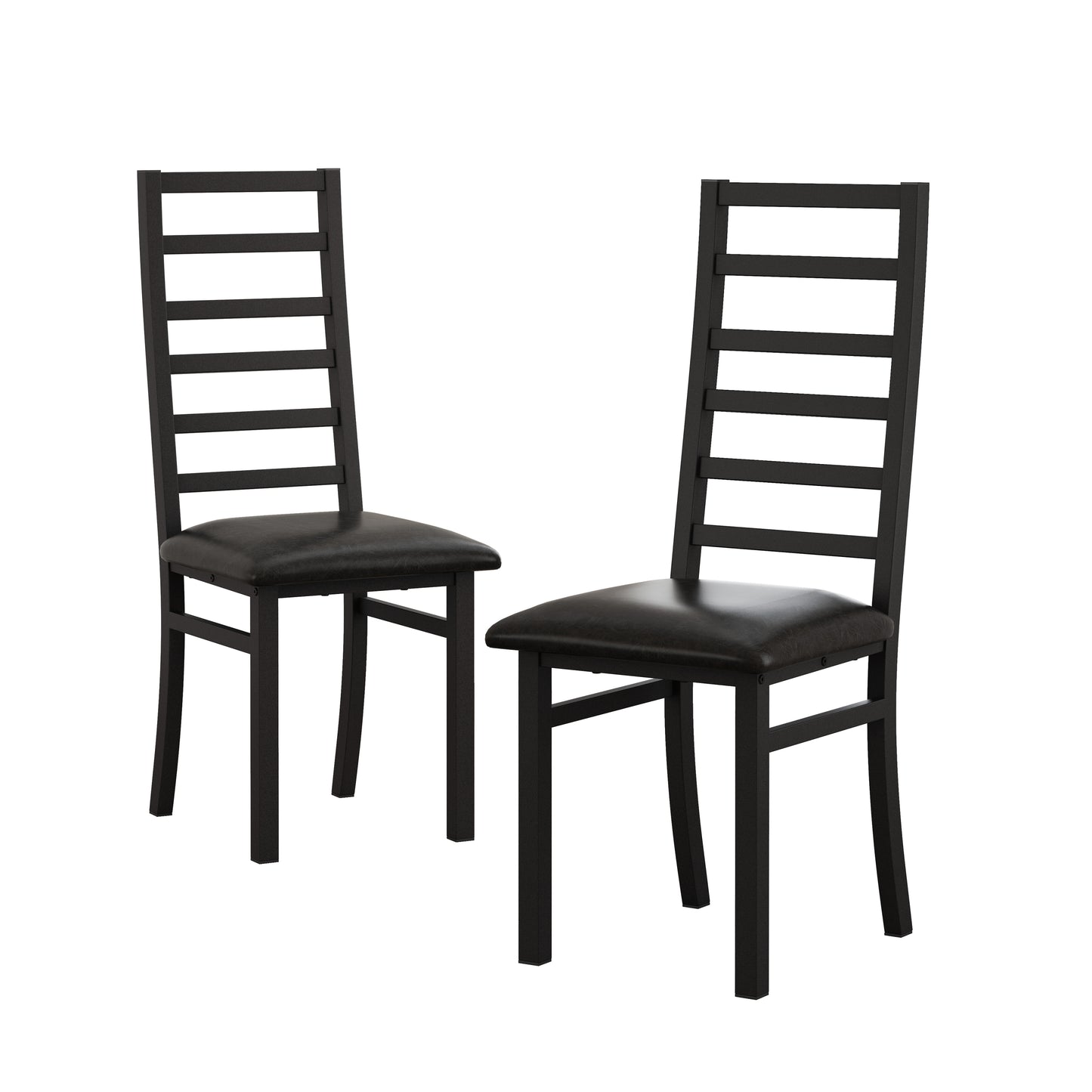 Metal Dining Chairs Set of 2, Steel Legs and PU Leather Seats, High Back Armless Dining Chairs, for Kitchen, Living Room, Black