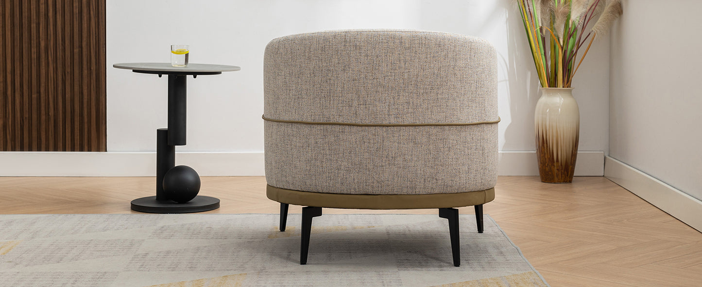 - Modern Two-tone Design: This chair is made of a combination of linen and PU leather, which is both dirt resistant and scratch resistant. The perfect combination of the two materials creates a delicate modern style.