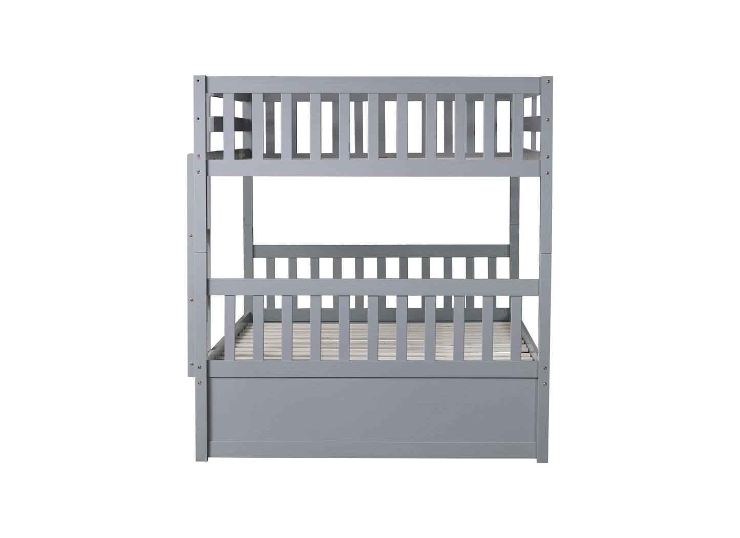Full Over Full Rubber Wood Bunk Bed with Trundle, Ladder and Guardrails, Convertible to 2 Full Size Beds, with Twin Size Trundle ,Grey(Old Sku:W504S00250)