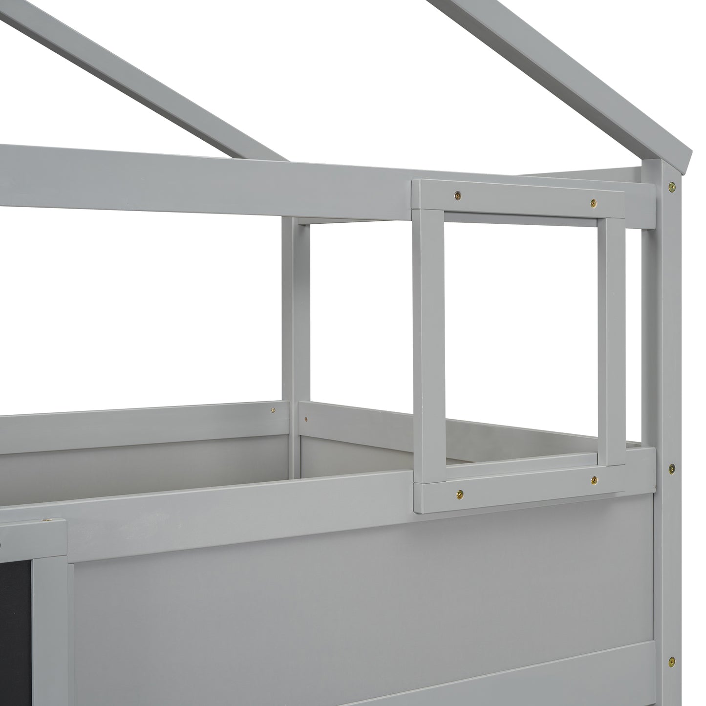 Twin over Full House Bunk Bed with Storage Staircase and Blackboard,Gray(Old SKU: GX001701AAE)
