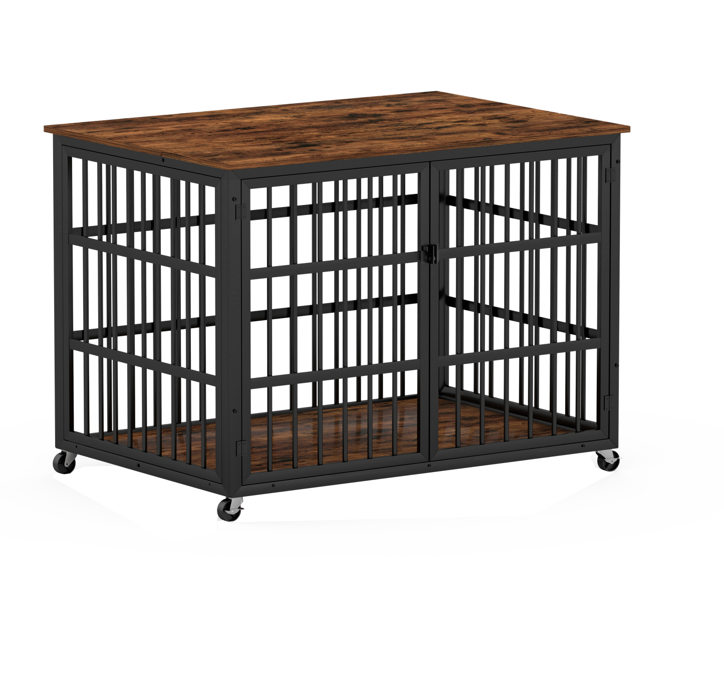 Furniture style dog crate wrought iron frame door with side openings, Rustic Brown, 43.3''W x 29.9''D x 33.5''H.