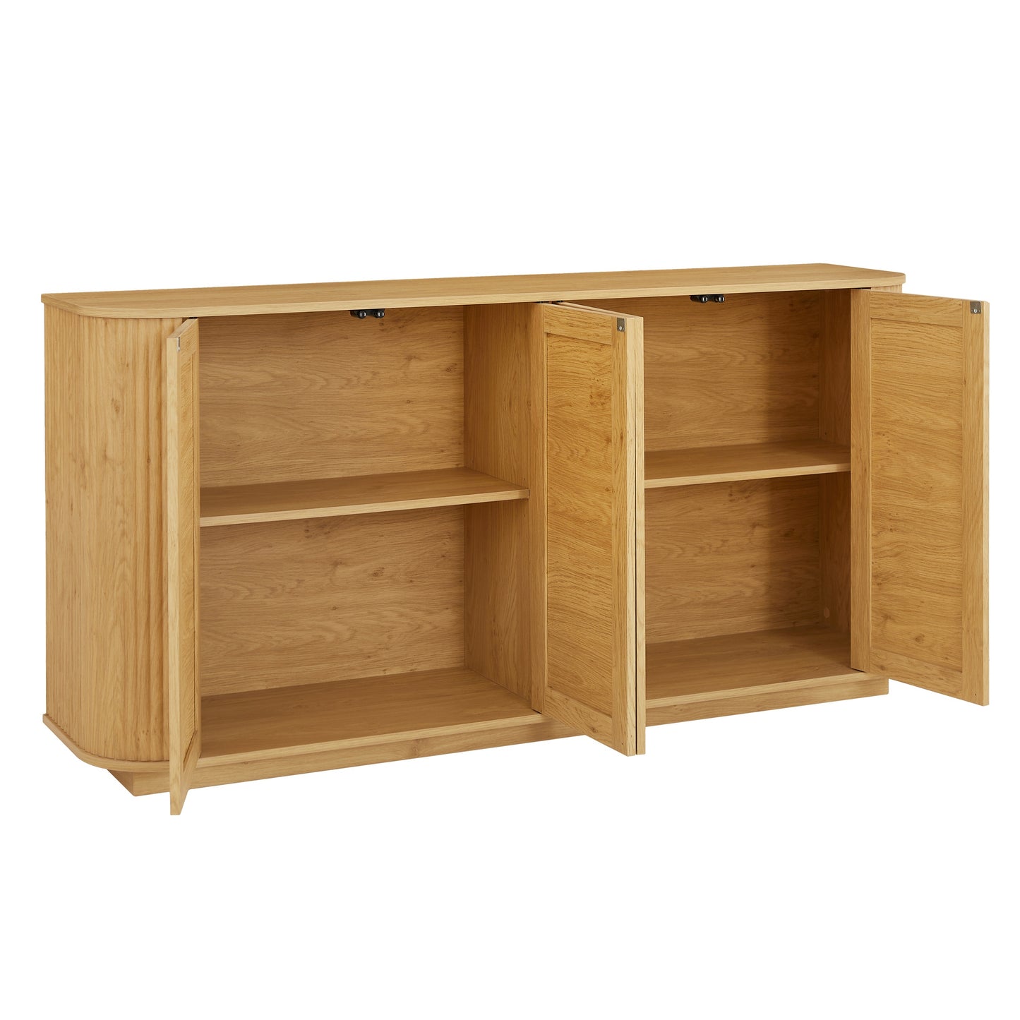 - Contemporary styled sideboard with rattan doors, wave patterned rounded corner molding and sturdy curved panels on the sides of the cabinet, the entire cabinet is simple and classic, perfectly blending into your room.