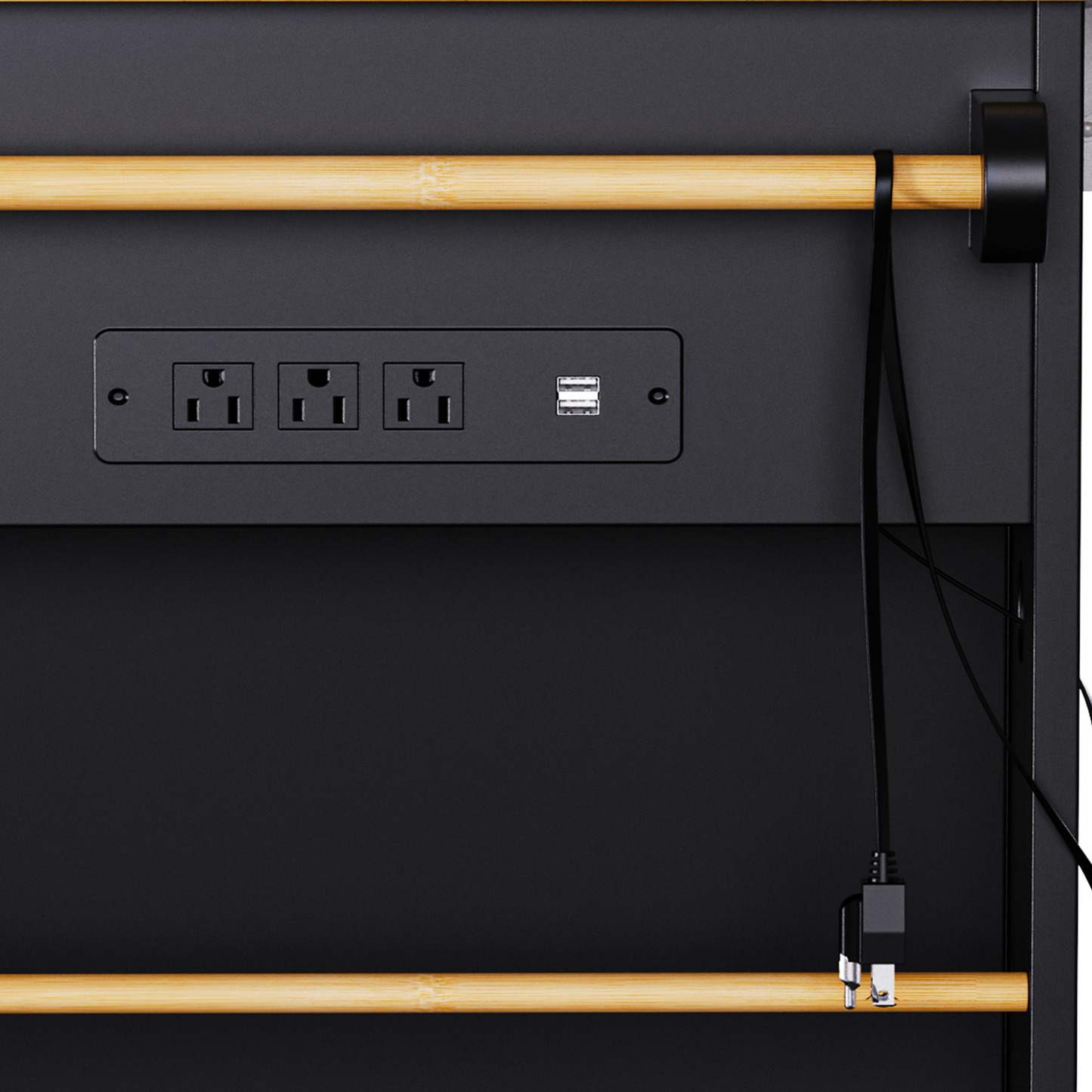 - [Large Countertop with Power Supply] The kitchen island cart is equipped with a 50” W x 11.8” D drop leaf, which can be unfolded or folded according to your needs. This elegantly designed kitchen cart also includes a sophisticated built-in charging station, featuring 3 AC outlets and 2 USB ports to effortlessly meet all of your kitchen appliance power requirements. You can conveniently charge your coffee maker, juicer, and toaster on the countertop of this kitchen storage island.
