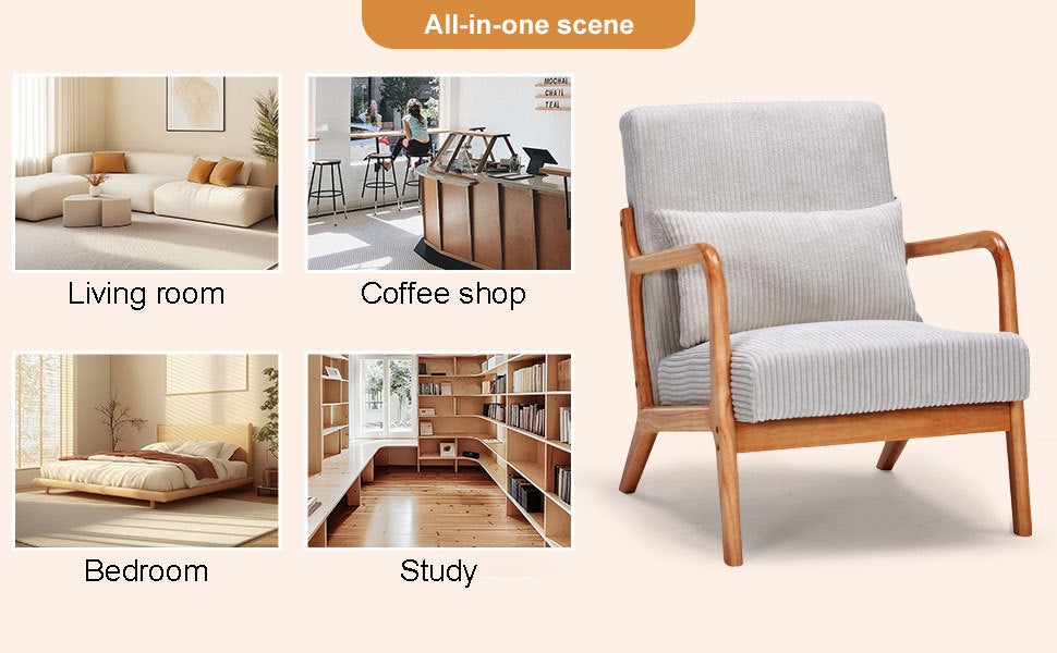 Mid-Century Modern Accent Chair with Pillow Upholstered in Antique Dark Grey Polyester and Solid Wood Frame(Antique Dark Grey)