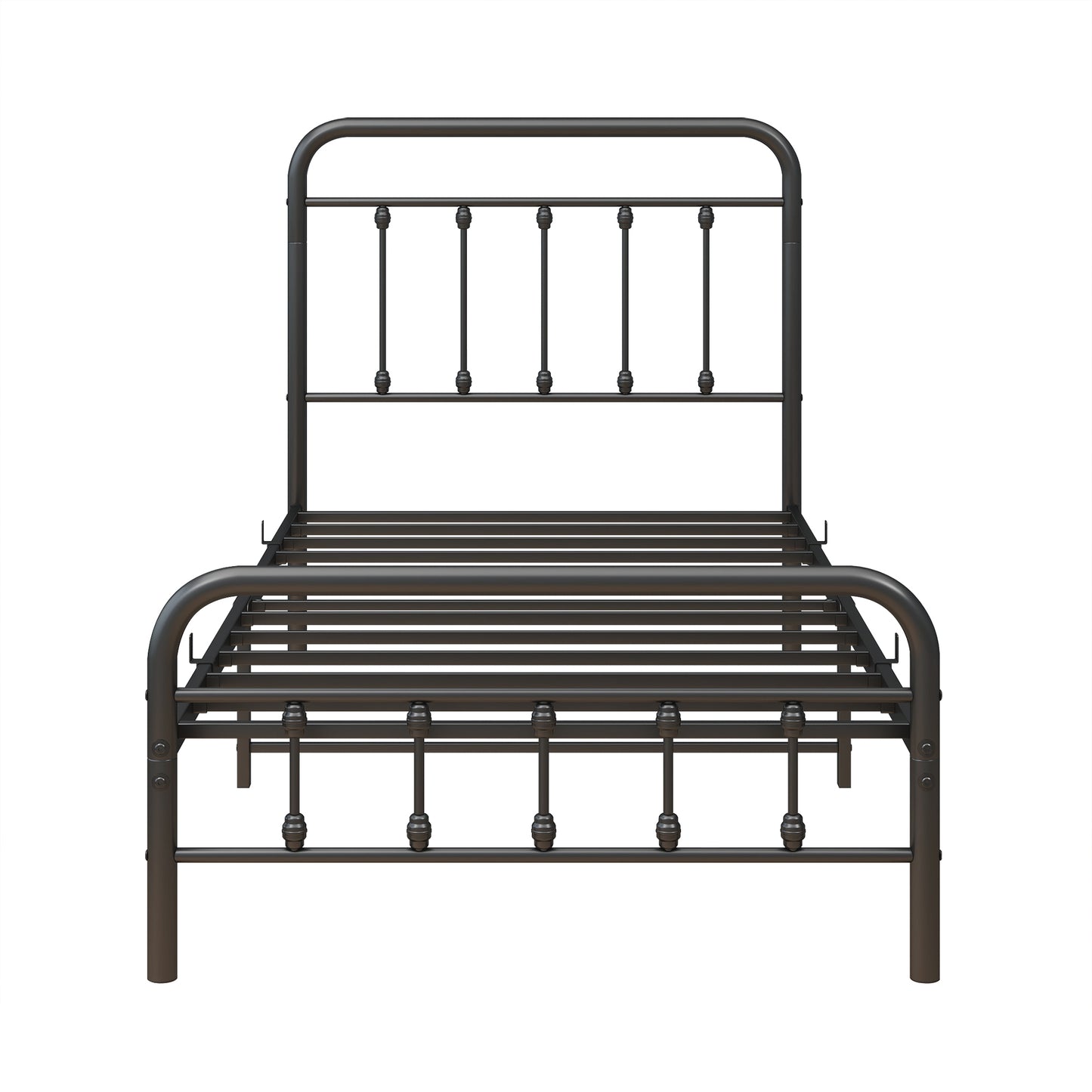 Metal Platform Bed Frame, Victorian Style Headboard/Footboard/Under Bed Storage/No Box Spring Needed/Twin Size Black
