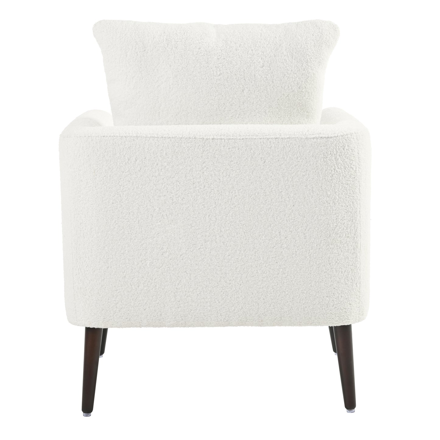 Modern Teddy Fabric Accent Chair - Mid-Century Upholstered Armchair with Pillow and Wood Legs for Living Room, Bedroom, or Reception Room - White