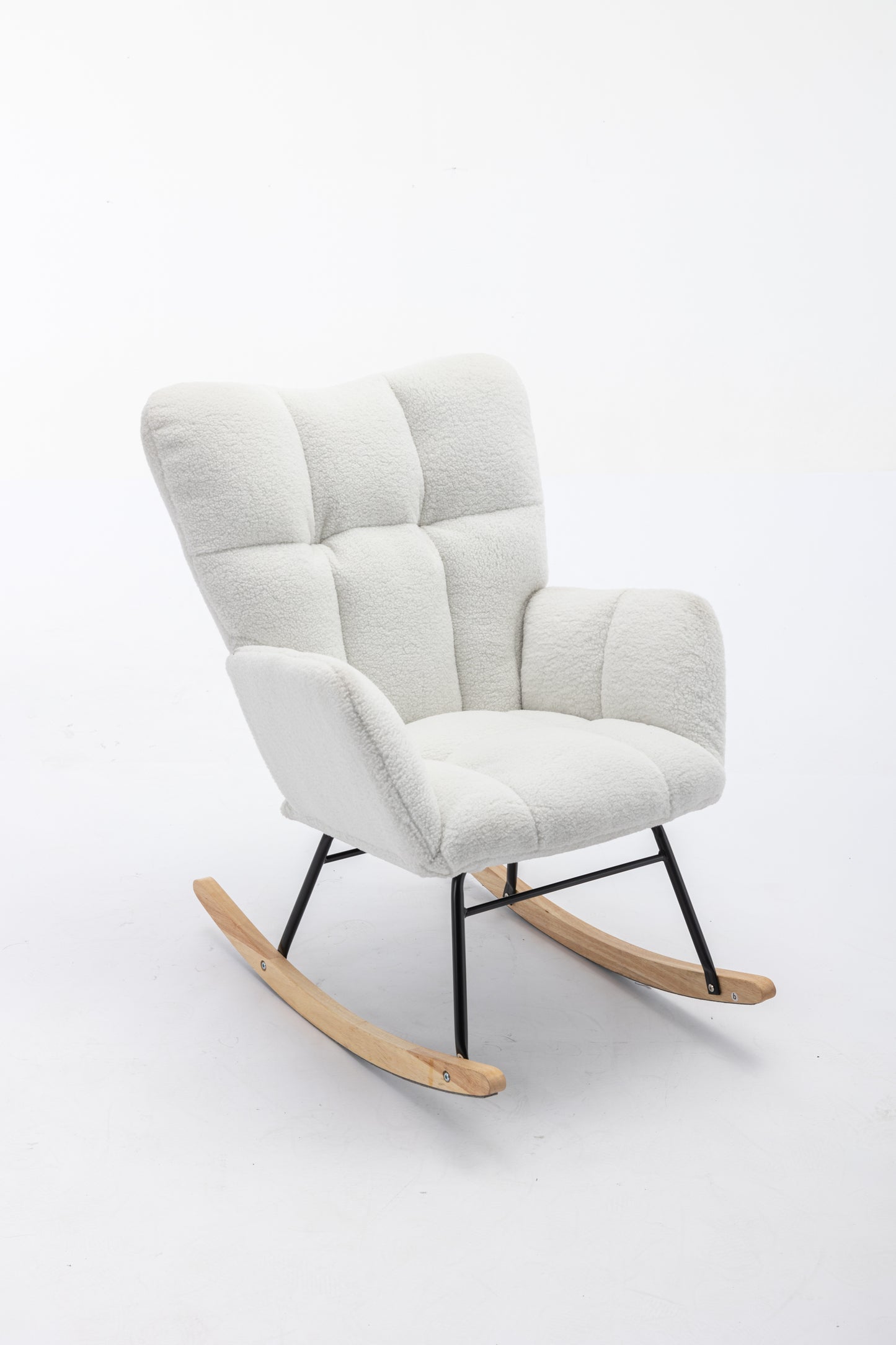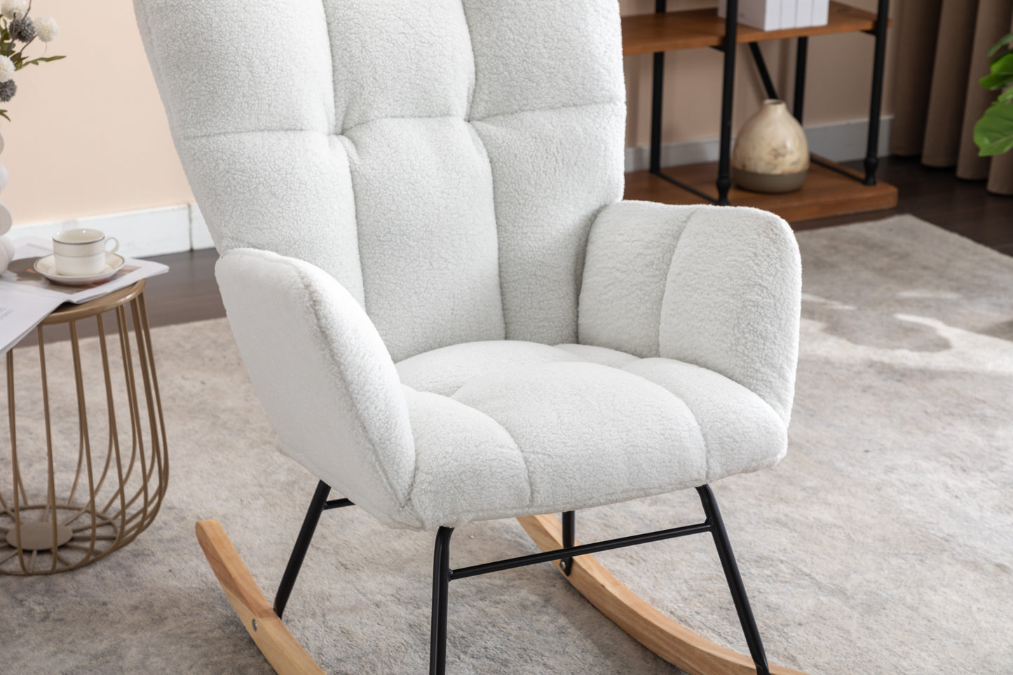 - Product BOM:Soft Teddy Material+Foam Filling+Wooden Frame+Black Paint Metal Base+Wooden Rocking Legs+Upholstered+Floor Protection And Isolation Layer;