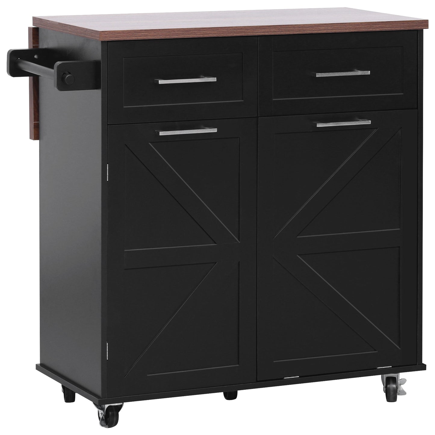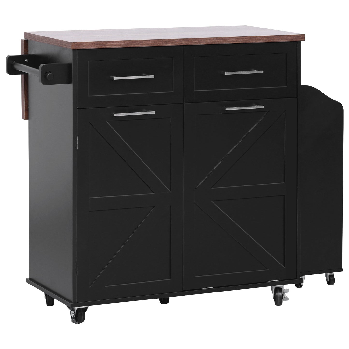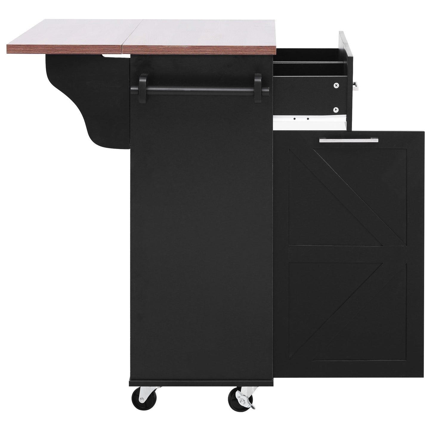 K&K 47.2' Farmhouse Kitchen Island with Drop Leaf, Kitchen Storage Island with Removable Side Racks, Two Drawers, Rolling Kitchen Cart on Wheels with Towel Rack, for Home, Kitchen, Dining Room, Black