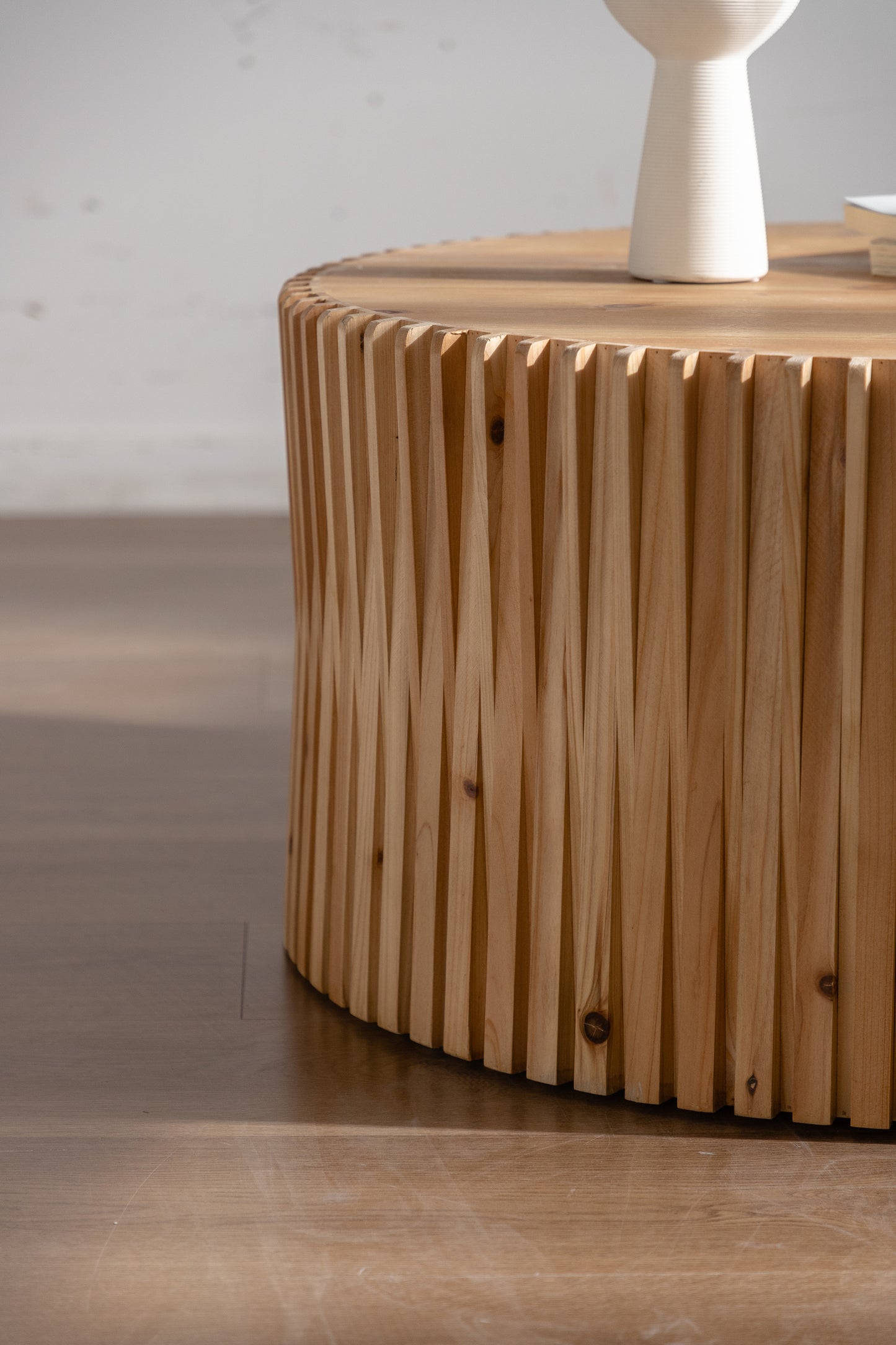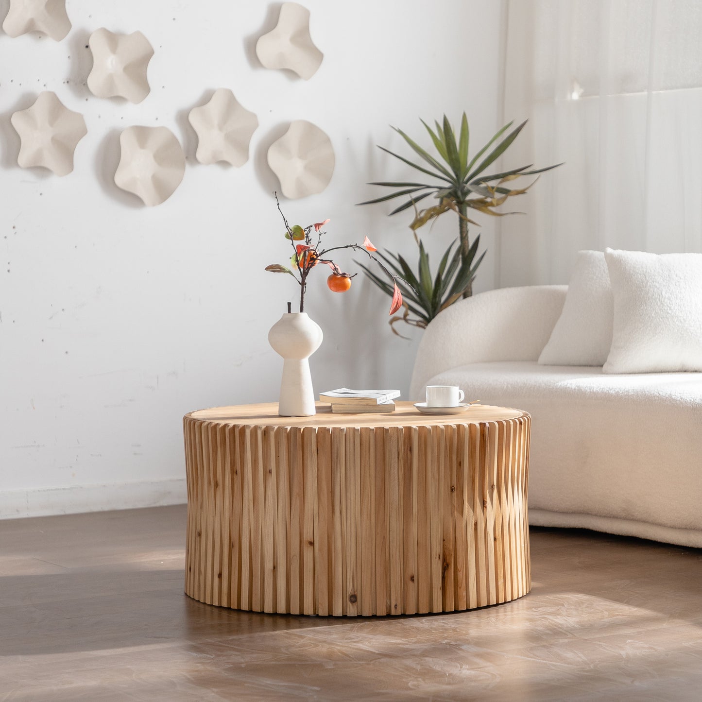 31.5' Retro Fashion Style Cylindrical Coffee Table with Vertical Texture Relief Design,Suitable for Living Room,Office,and Dining Room