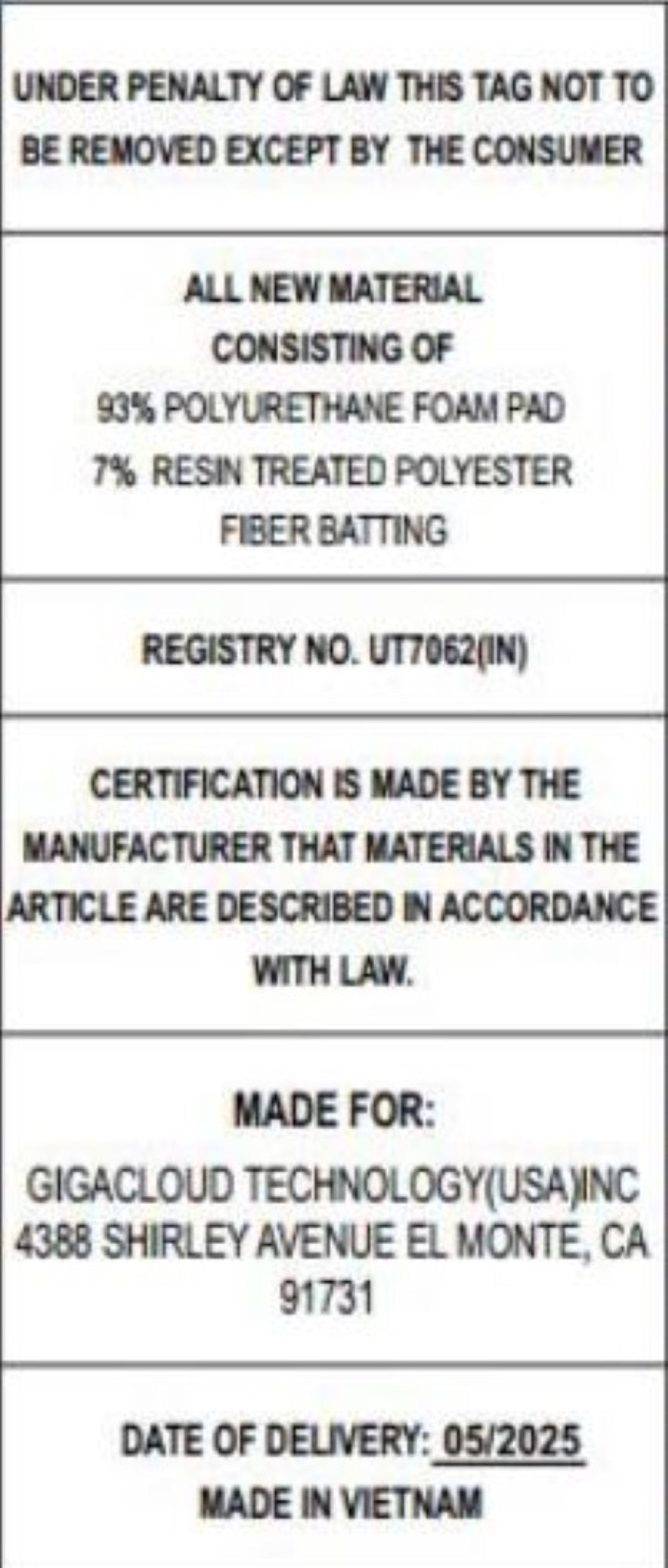 | Filler | Foam |