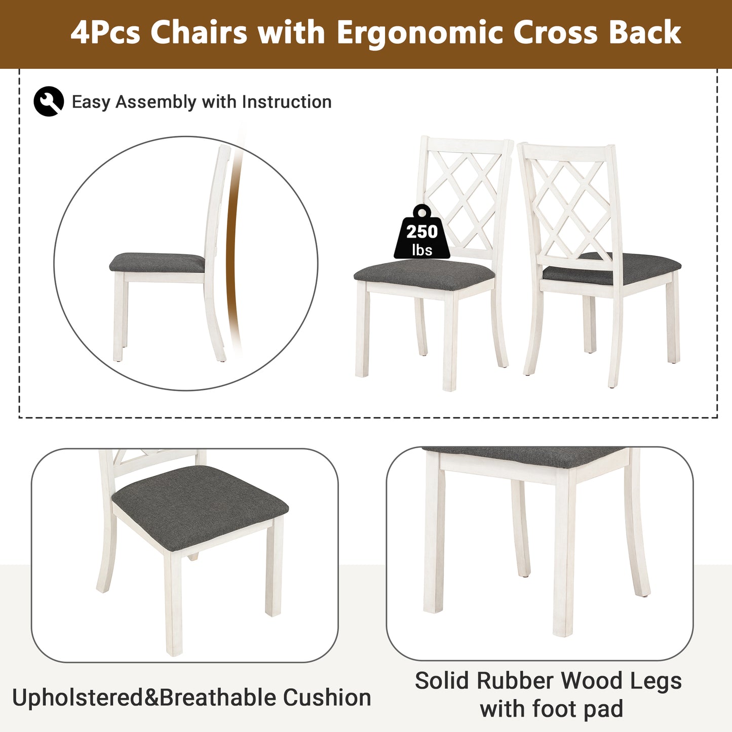 - [Cross Back Dining Chairs] The cross design back dining chair with soft cushion oozes the room with eye-catching mid-century feelings. Sturdy rubberwood legs and upholstered in breathable performance linen fabric with foam cushioning makes the chair last for a long time.