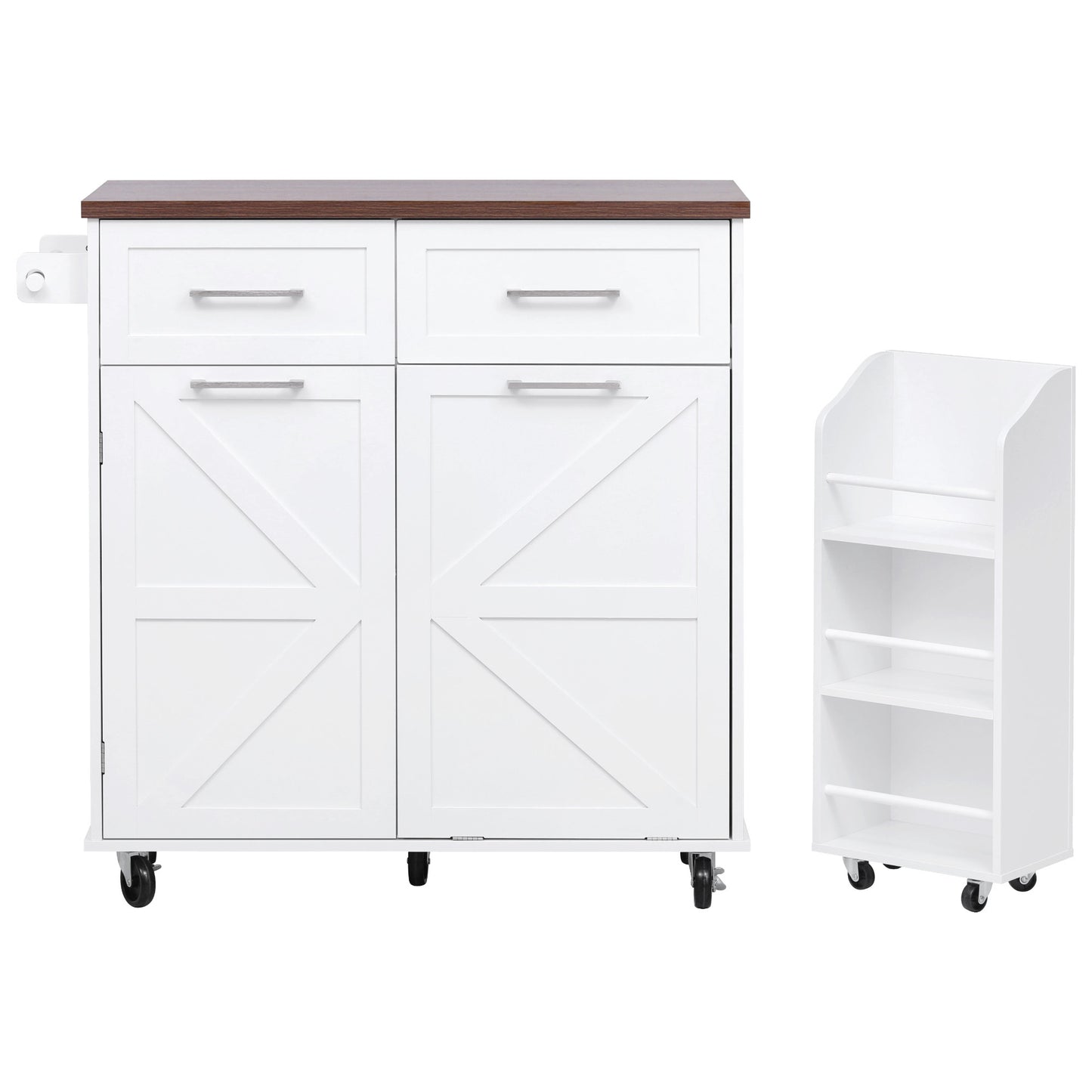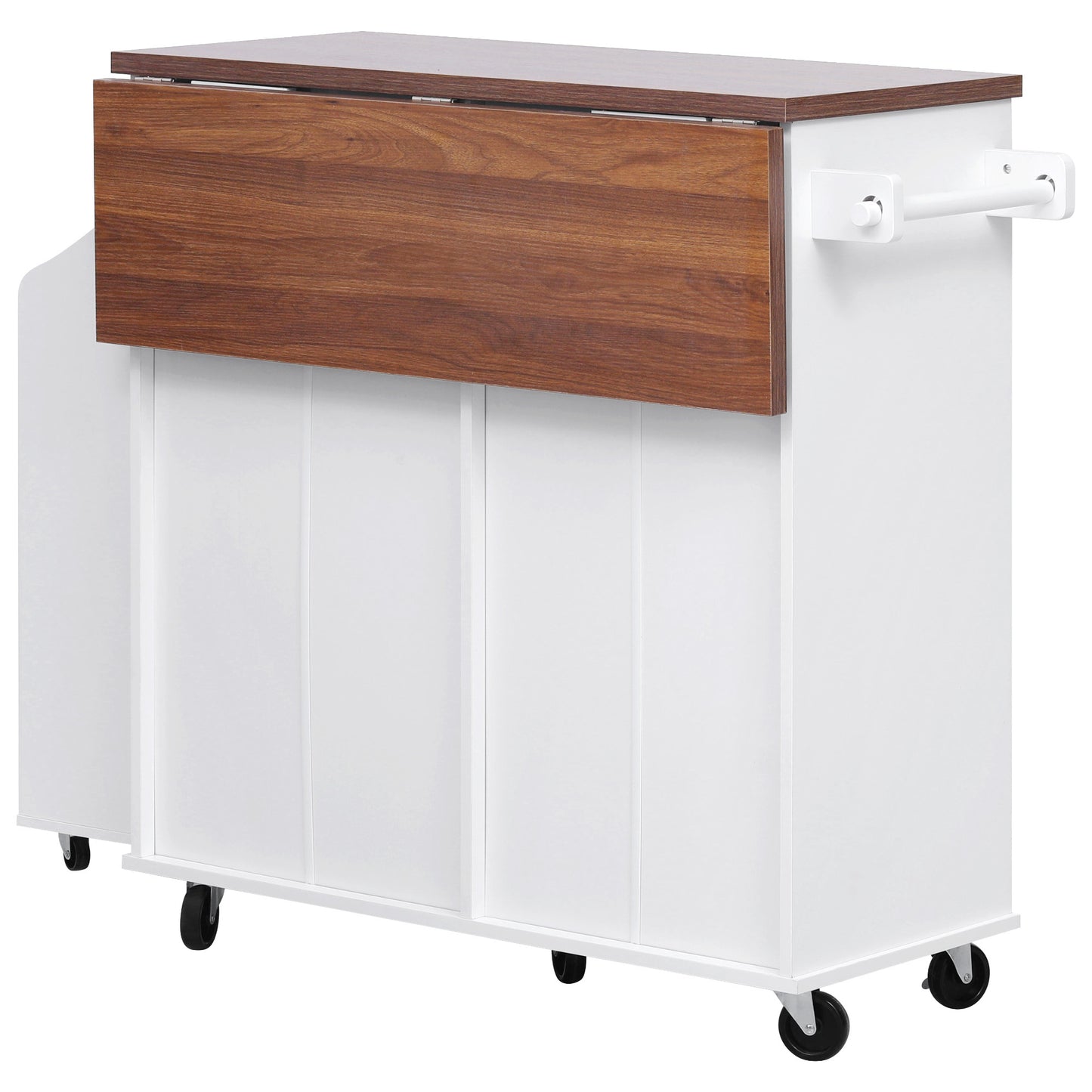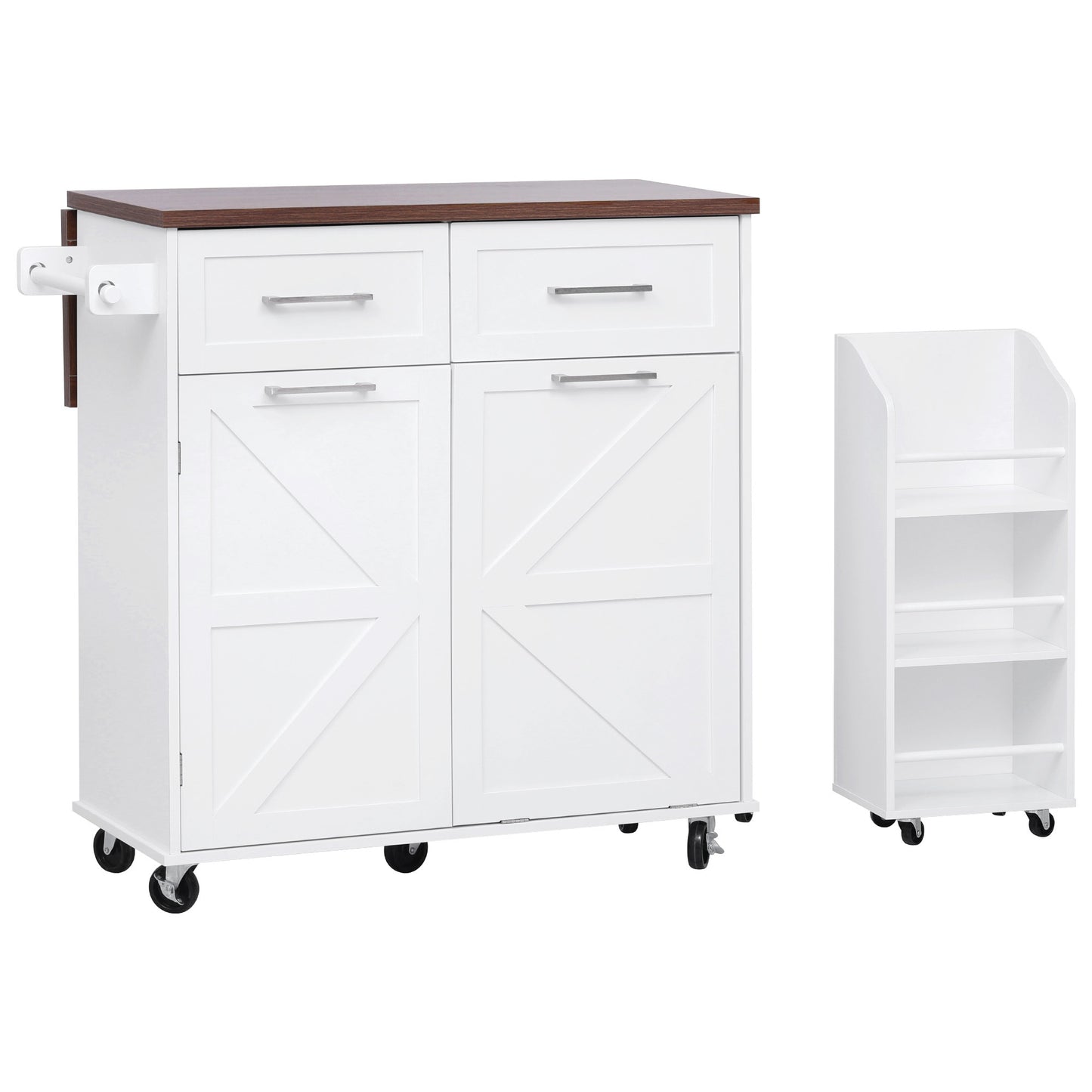 K&K 47.2' Farmhouse Kitchen Island with Drop Leaf, Kitchen Storage Island with Removable Side Racks, Two Drawers, Rolling Kitchen Cart on Wheels with Towel Rack, for Home, Kitchen, Dining Room, White
