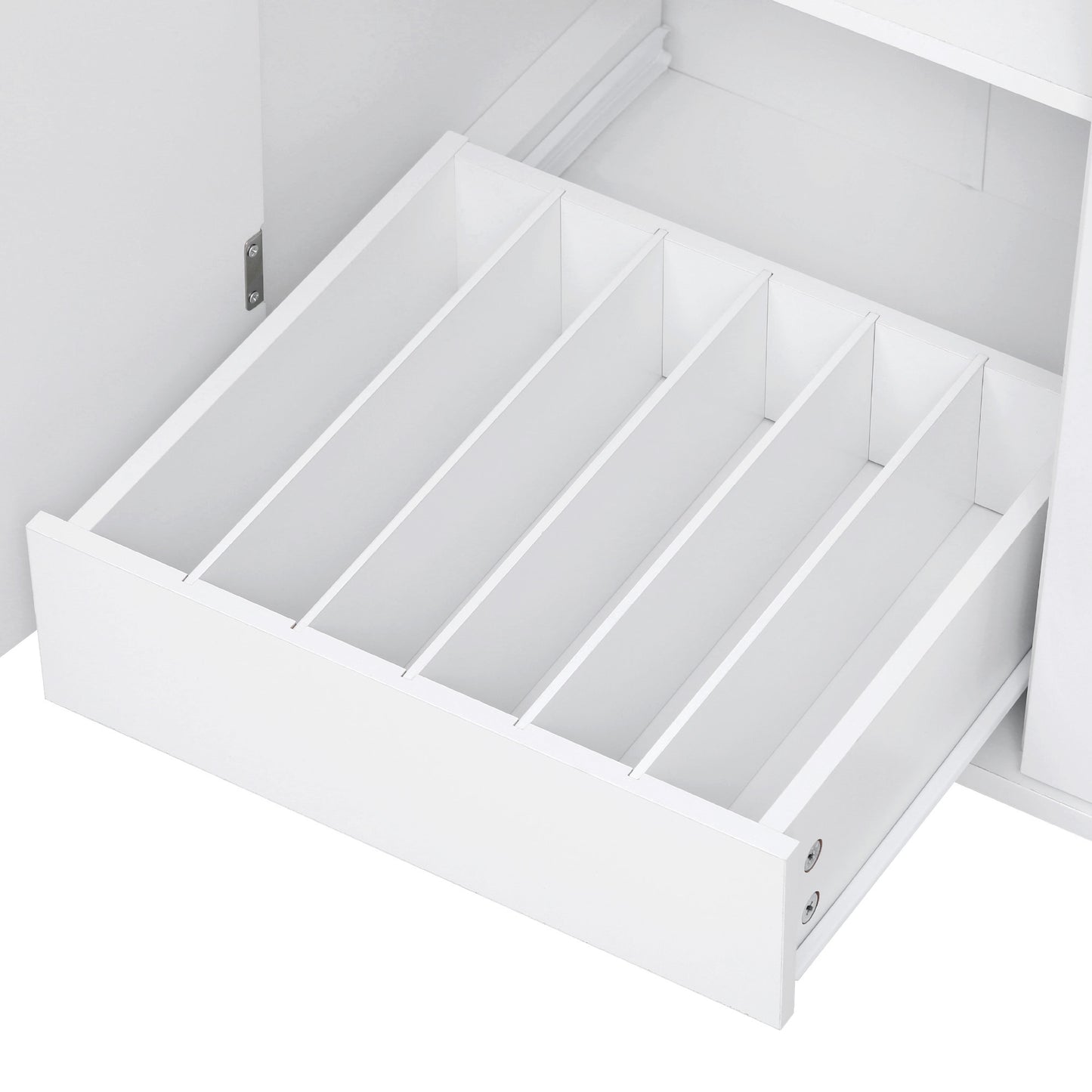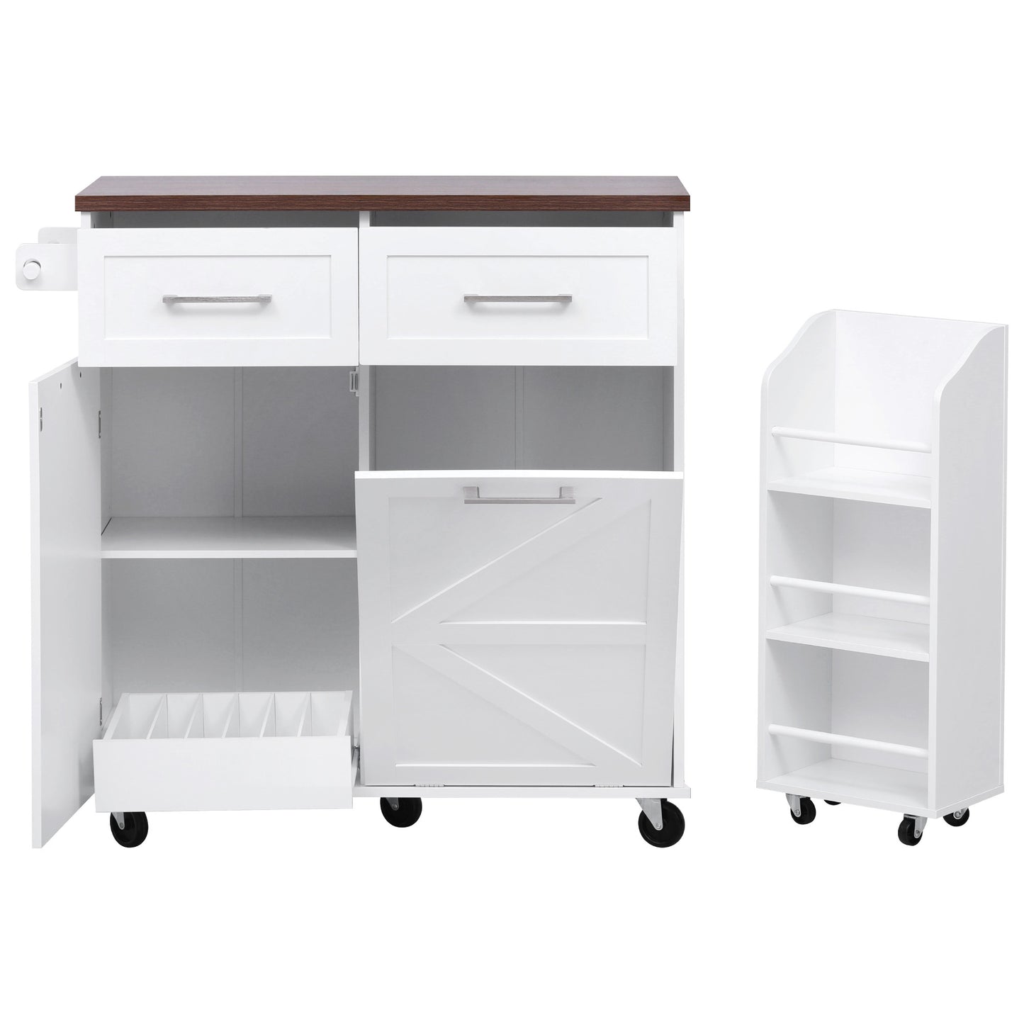 | Highlights | [2 Deep Drawers and 2 Storage Cabinets][Drop Leaf] [Individually Removable Mobile Side Selves][Ample Storage Space] [Towel Rack][9 * 360°Smooth Rotation Wheels with 2 Lockable ] [Adjustable Shelf][5 Replacement Solid Wood Feet] [Pot Organizer][Trashcan Cabinet][Silver Metal Handle] [Door Magnetic][Smooth Metal Slide] |