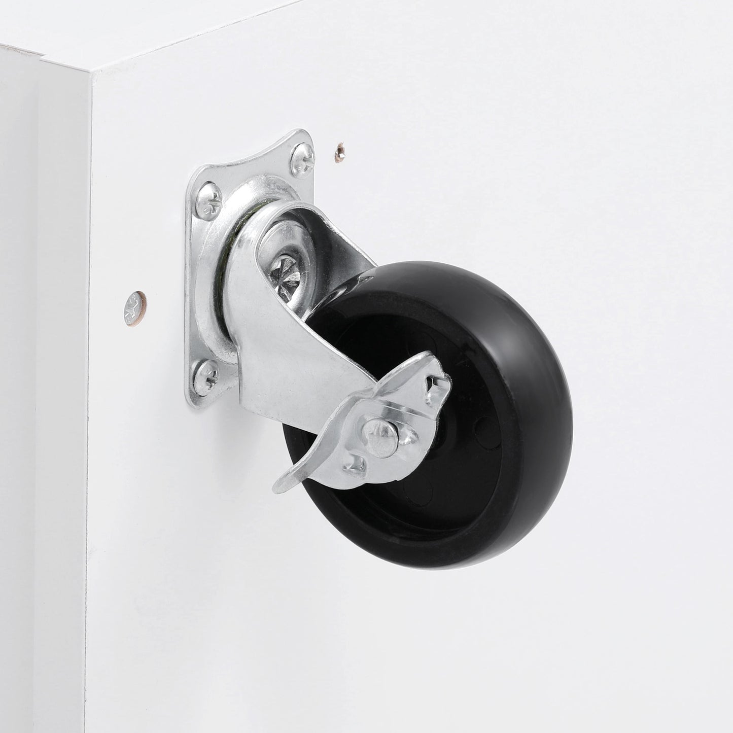 - [Mobile&Stationary Kitchen Island] This mobile kitchen island on wheels comes with a total of nine wheels that allow it to swivel and move in all directions. Among them, the left side cabinet has five wheels and two are lockable. These wheels can be both effective in ensuring the flexibility of the product as well as bringing stability and safety. Not to mention, this product comes with five sturdy solid wood cabinet feet for your alternative use.