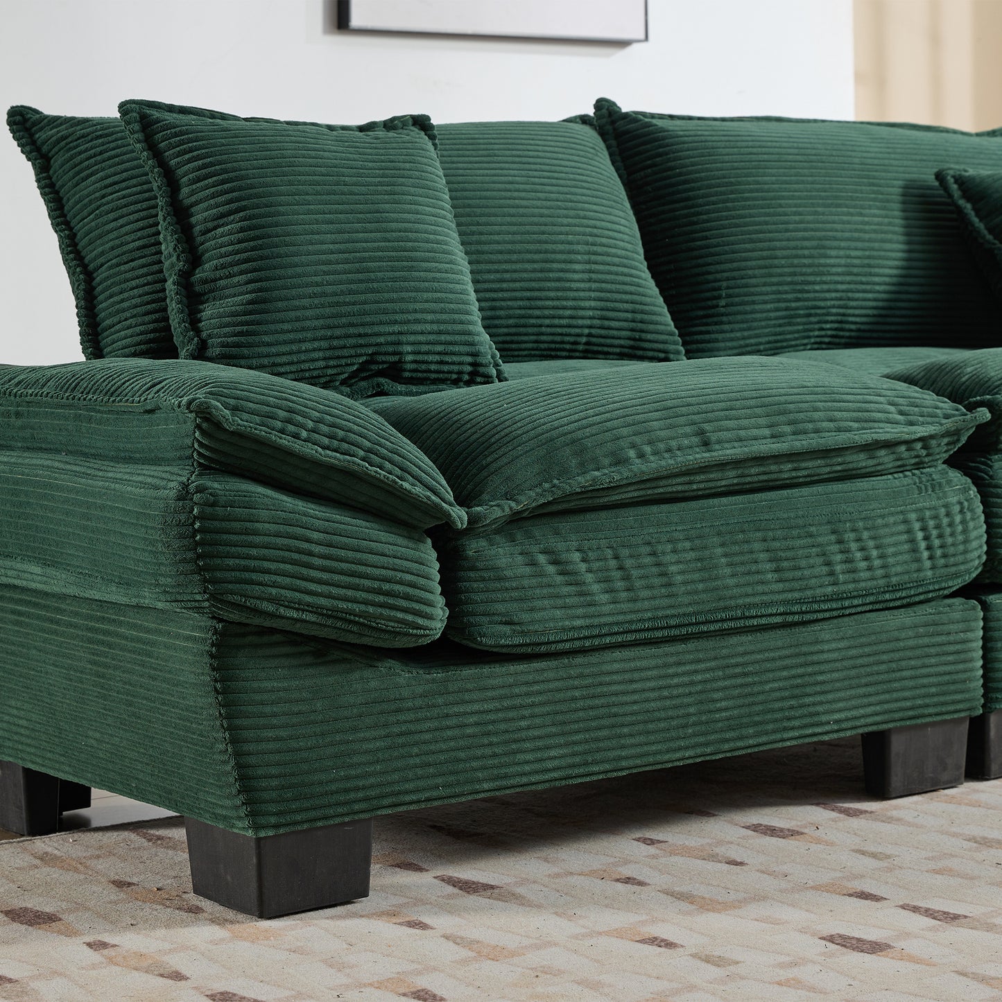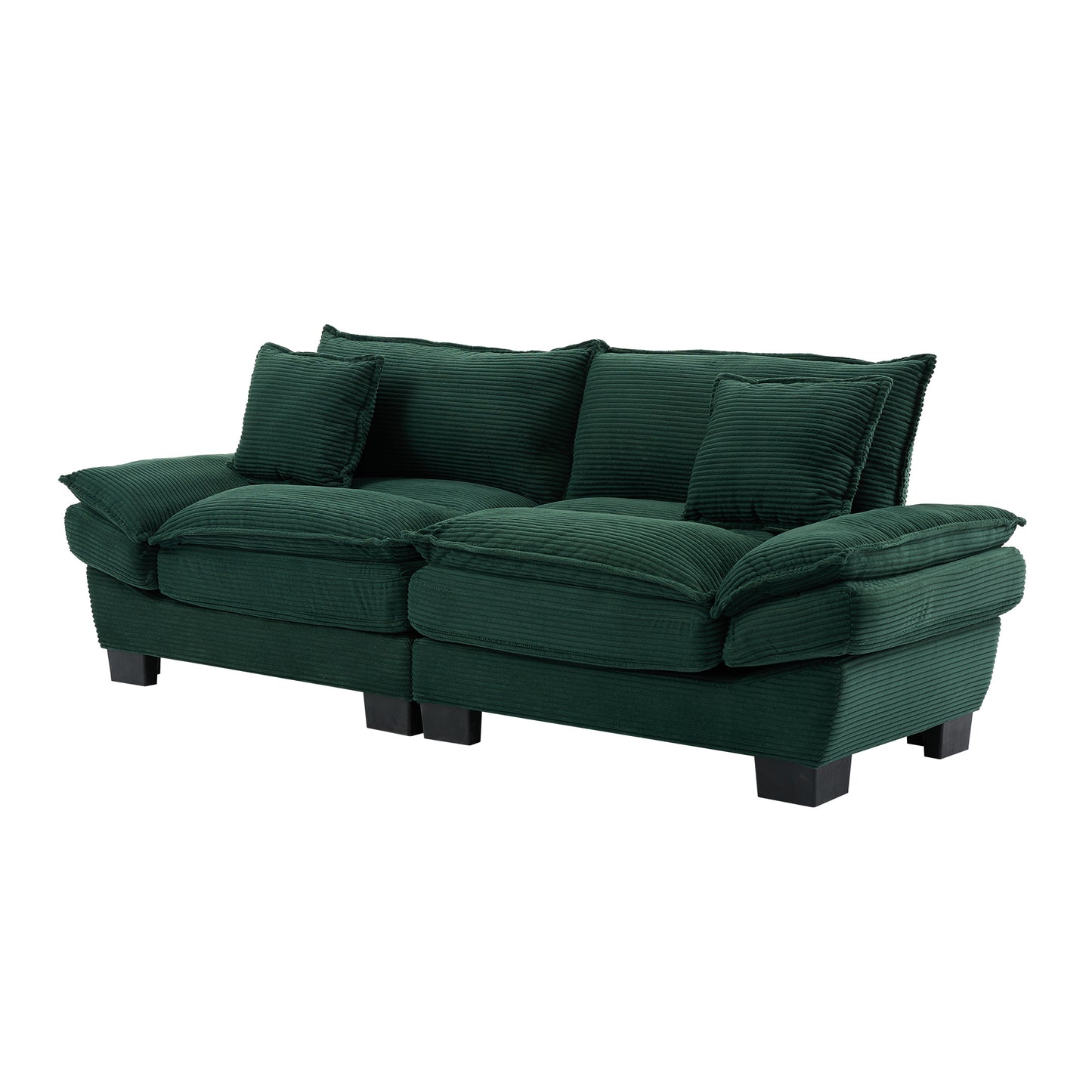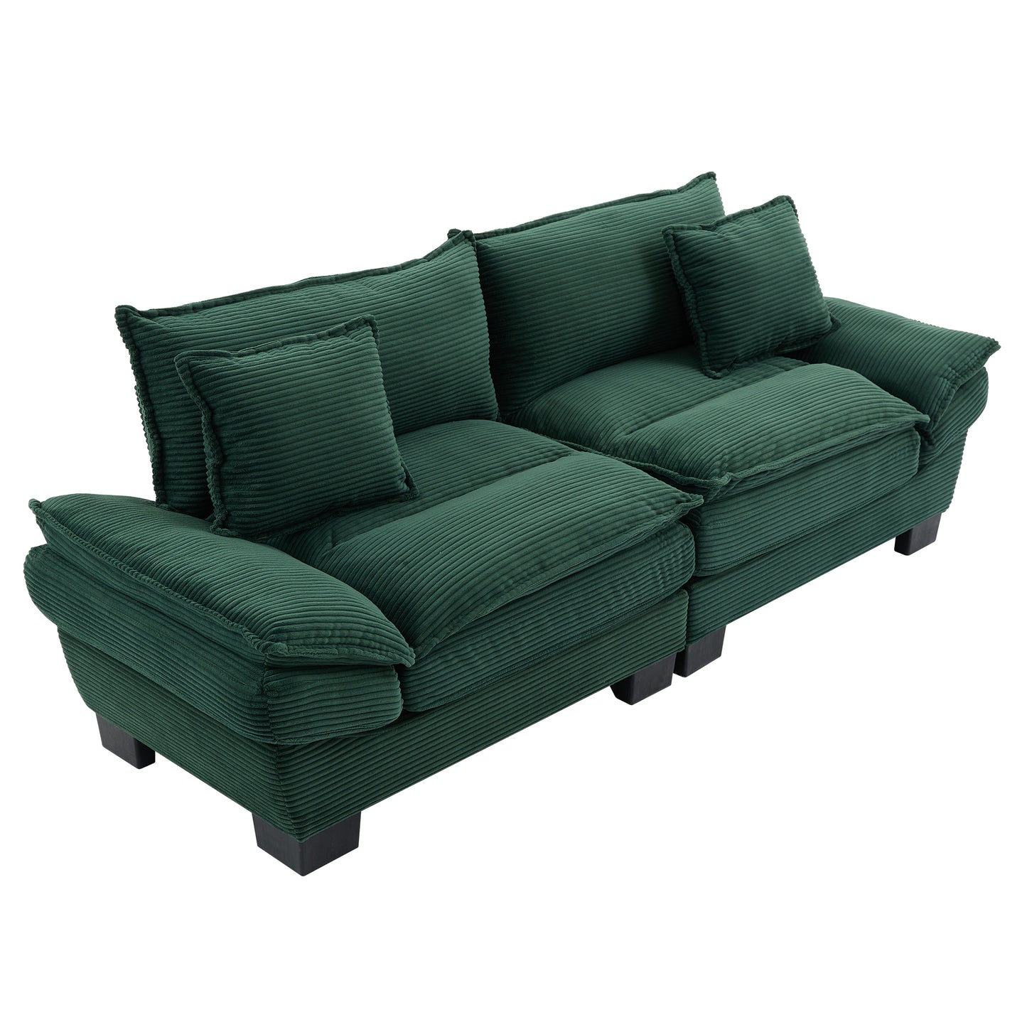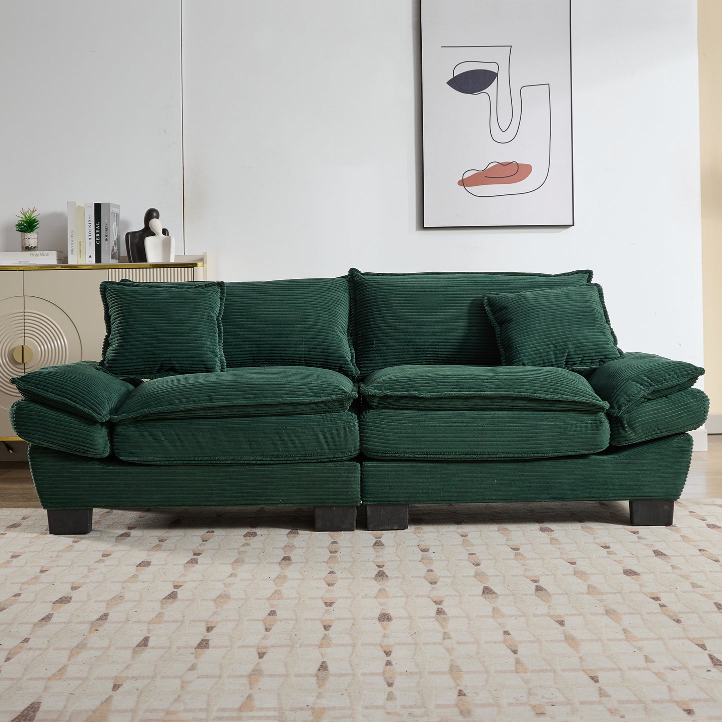Corduroy Sofa Sleeper Couch Loveseat Sofa with Pillows Comfy Upholstered Deep Seat Sofa for Bedroom,Living Room,Apartment,Office,Dorm-Green Corduroy