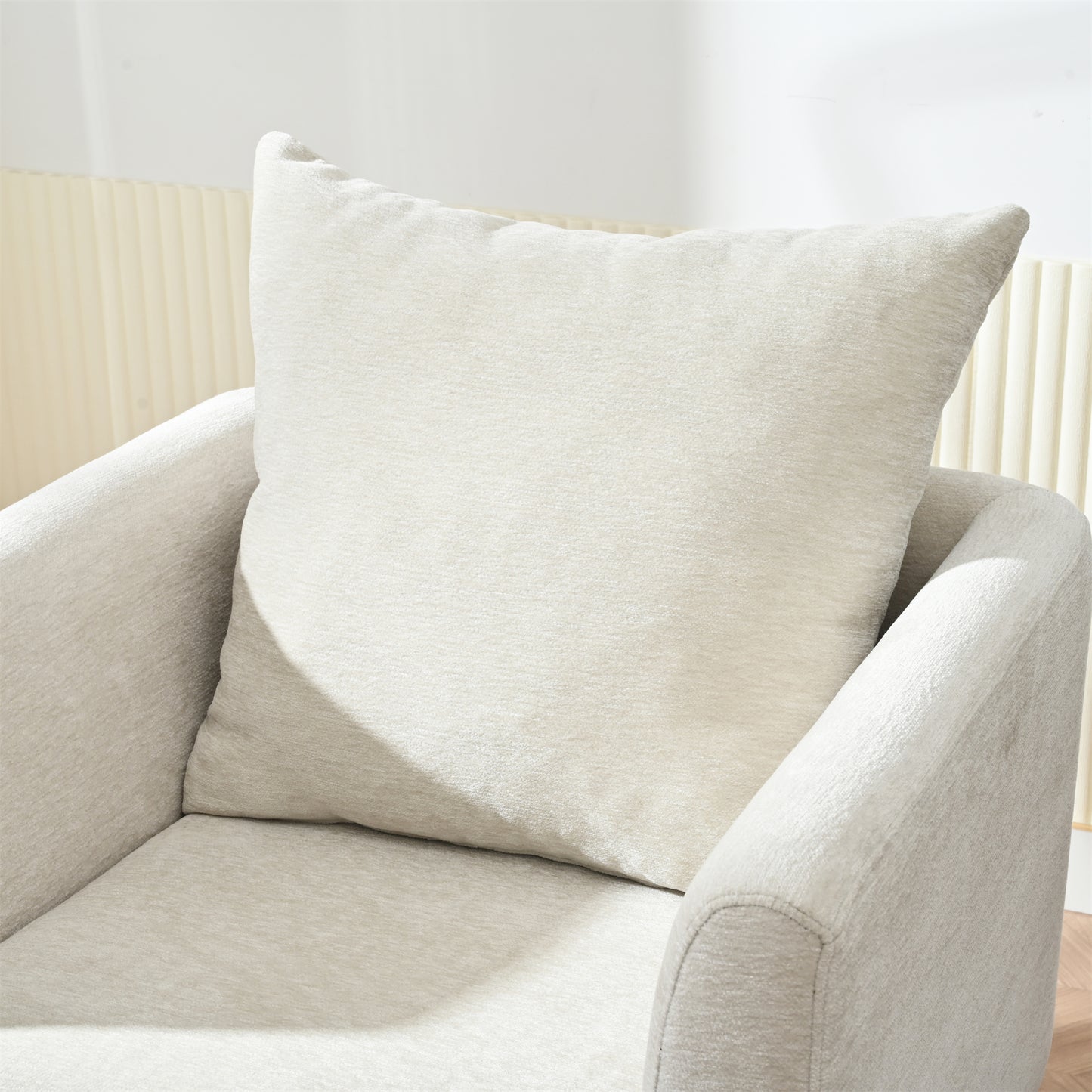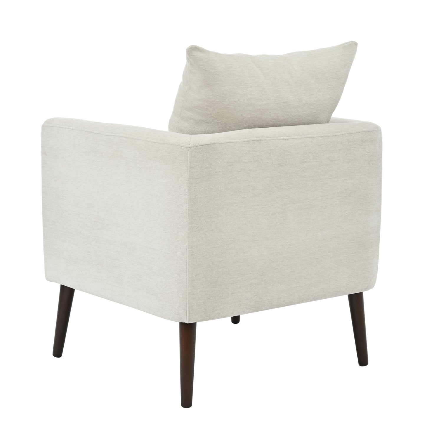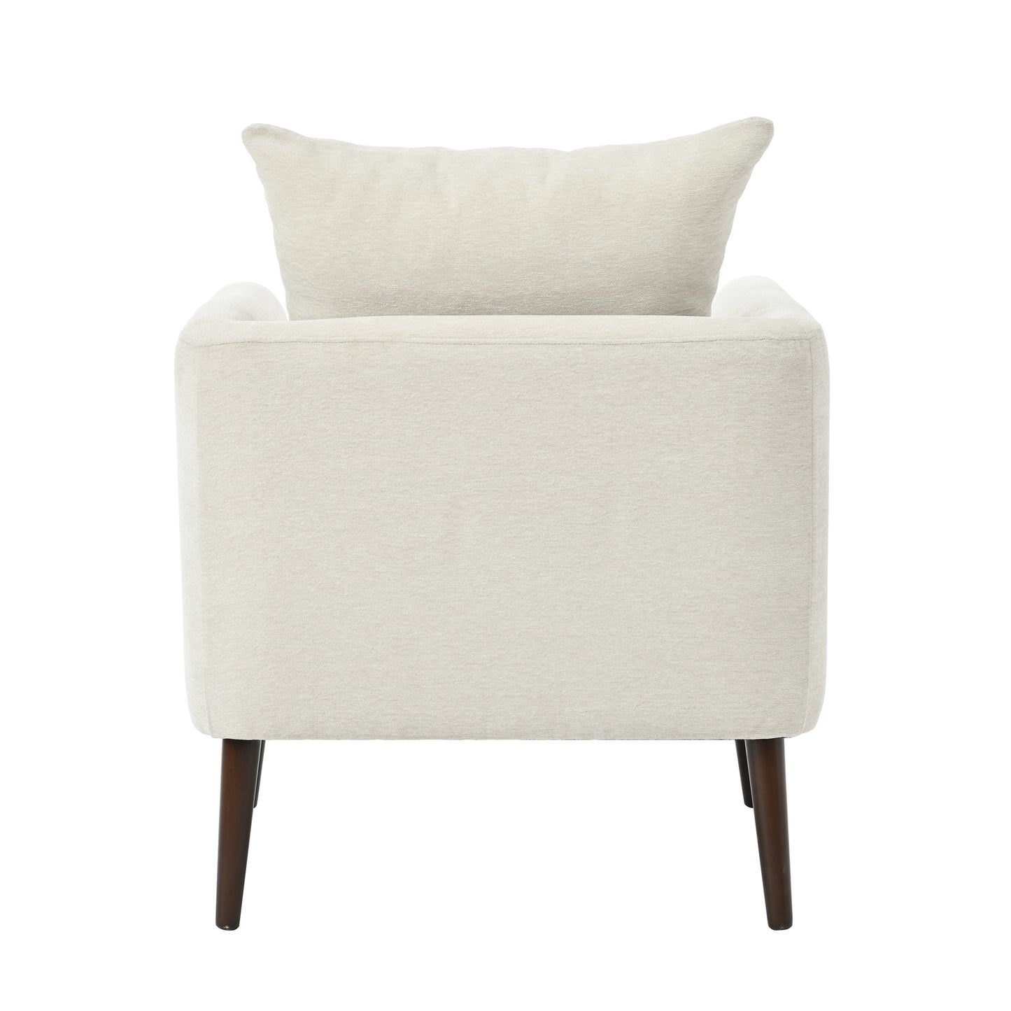 Modern Chenille Accent Chair, Upholstered Armchair for Living Room, Mid Century Fabric Lounge Chair w/Pillow, Comfortable Reading Chair with Wood Legs for Living Room, Bedroom, Reception Room (Beige)