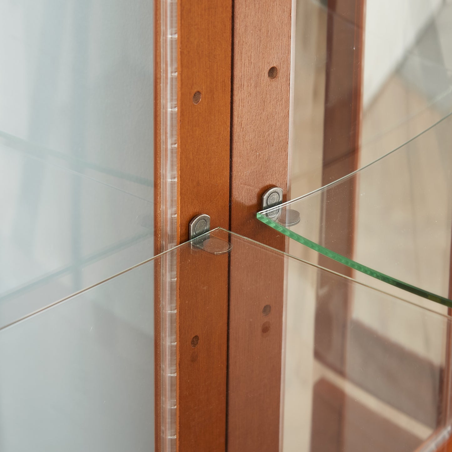 - Durable Construction: This curio cabinet with glass doors is constructed from composite wood for ease of assembly.The Walnut finish can be cleaned with a dry, soft cloth to remove dust, please do not use liquid cleaning chemicals.