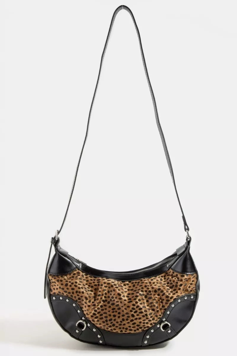 Fame Dark Spotted Leopard Print Half Moon Shoulder Bag