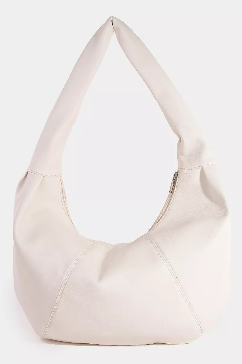 Fame Panel Stitch Crescent Leather Shoulder Bag
