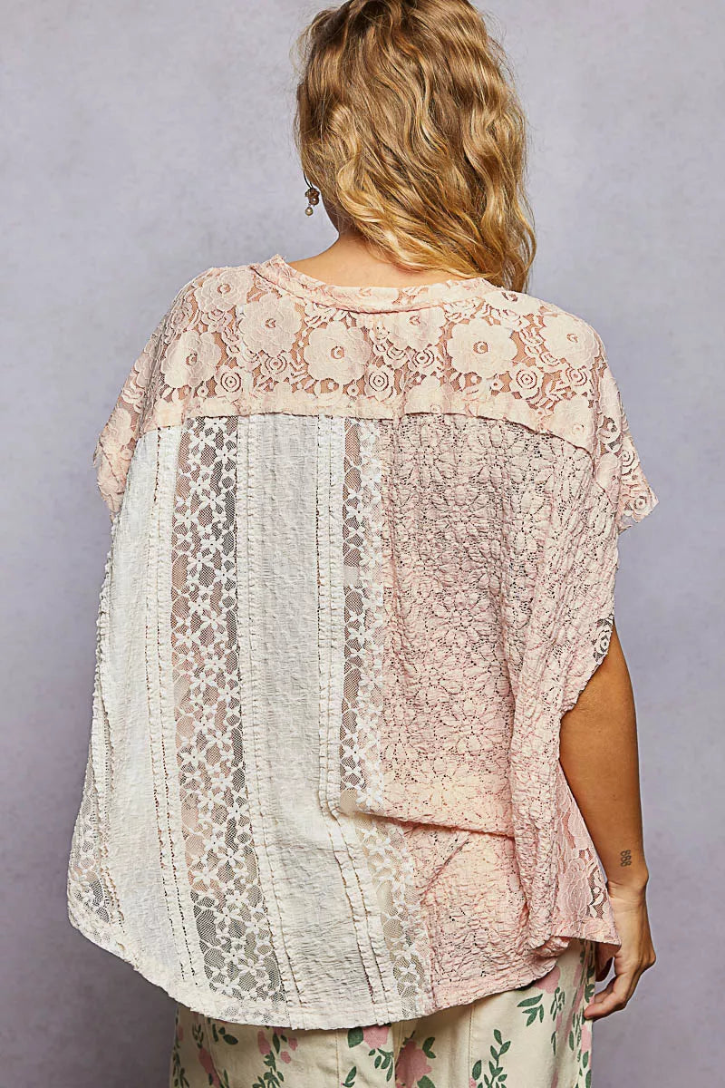 POL Asymmetrical V-Neck Short Sleeve Lace Top