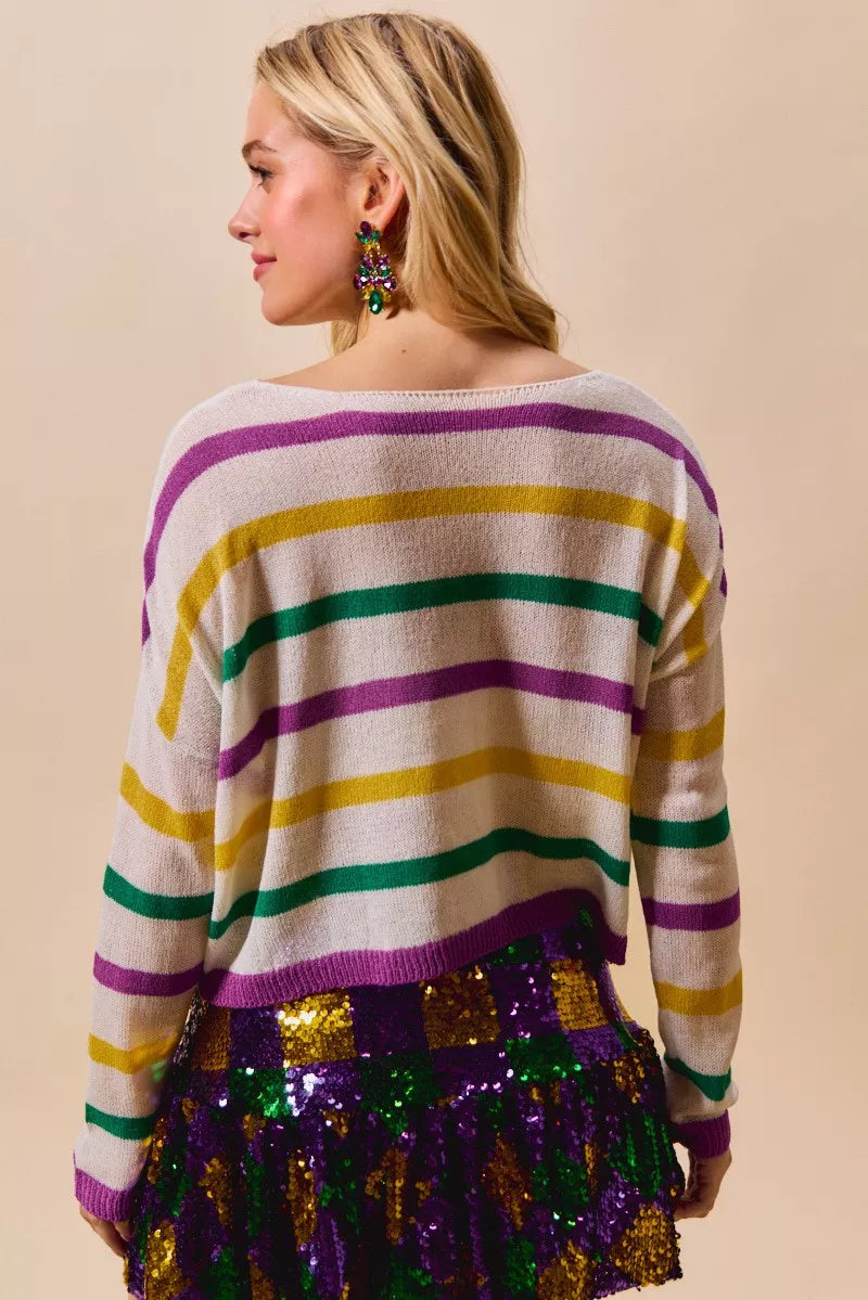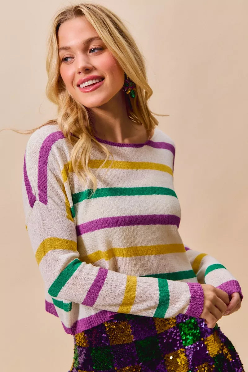 SO ME Mardi Gras Color Stripe Lightweight Sweater Top
