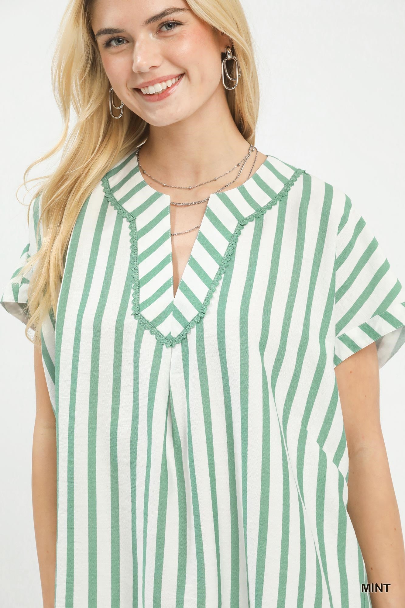 Umgee Mixed Stripe Split Neck Oversized Blouse