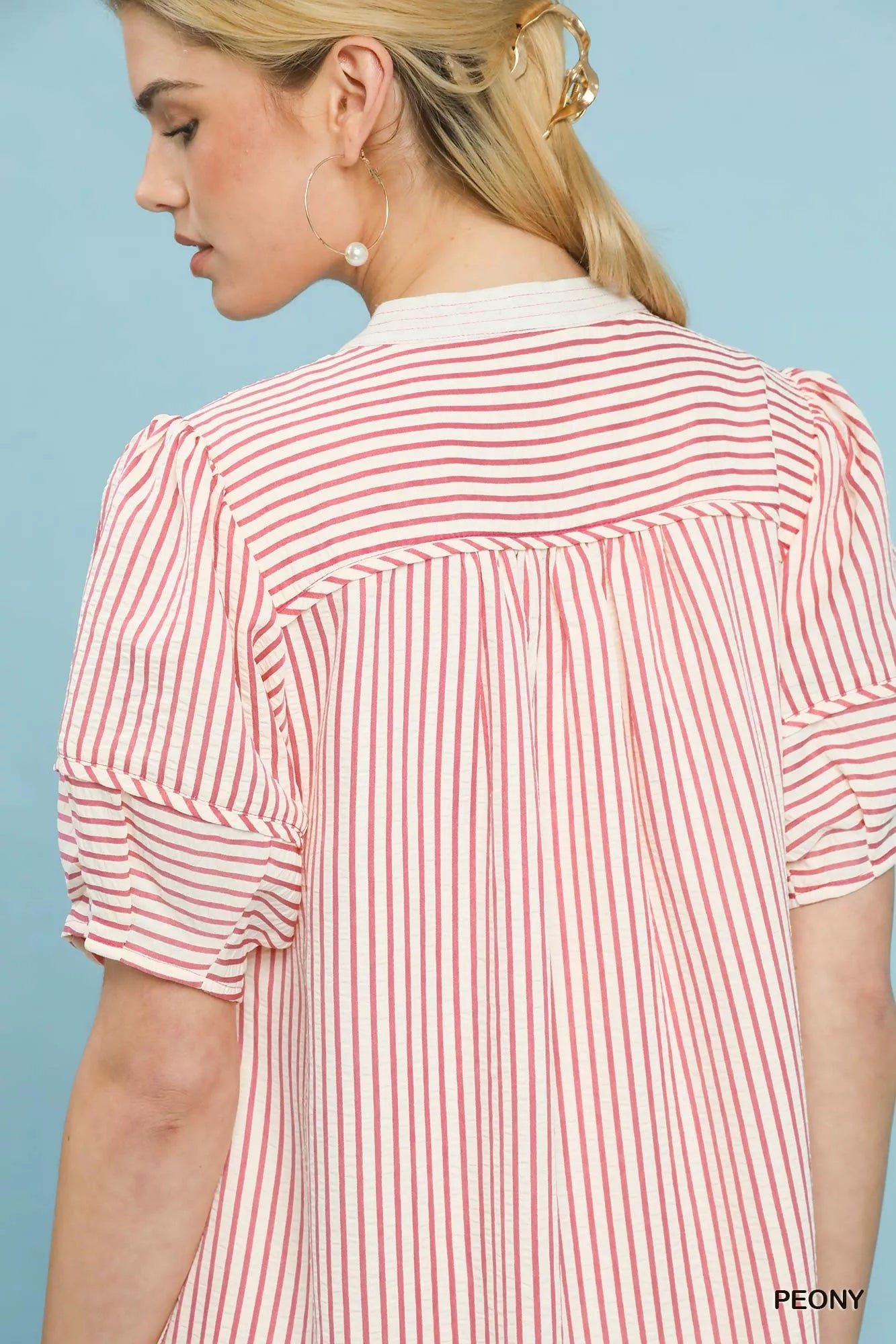 Umgee Pinstripe Shift Dress with Contrast Trim