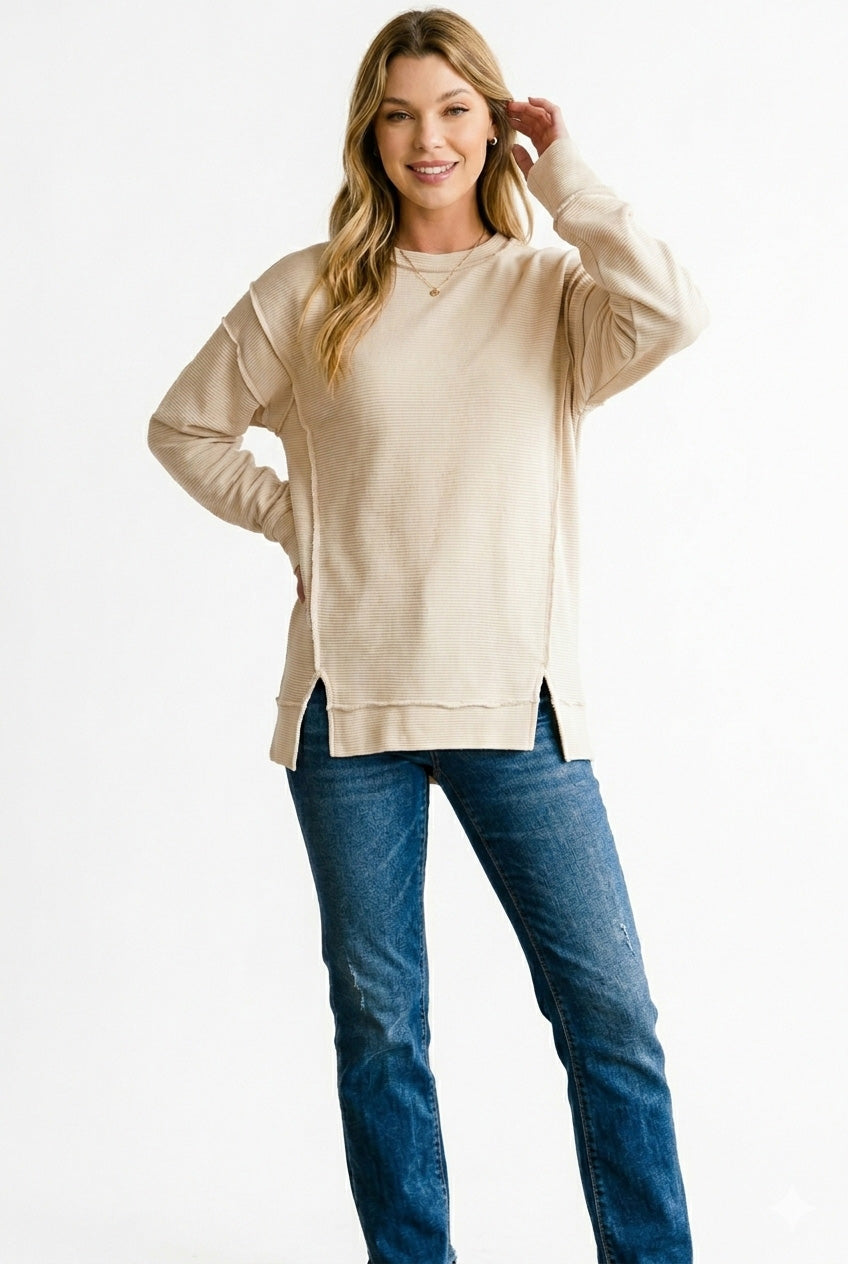 Zenana Acid Washed Double Ribbed Exposed-Seam Sweatshirt