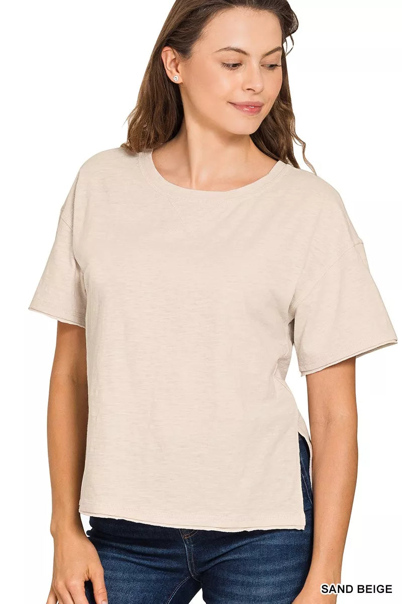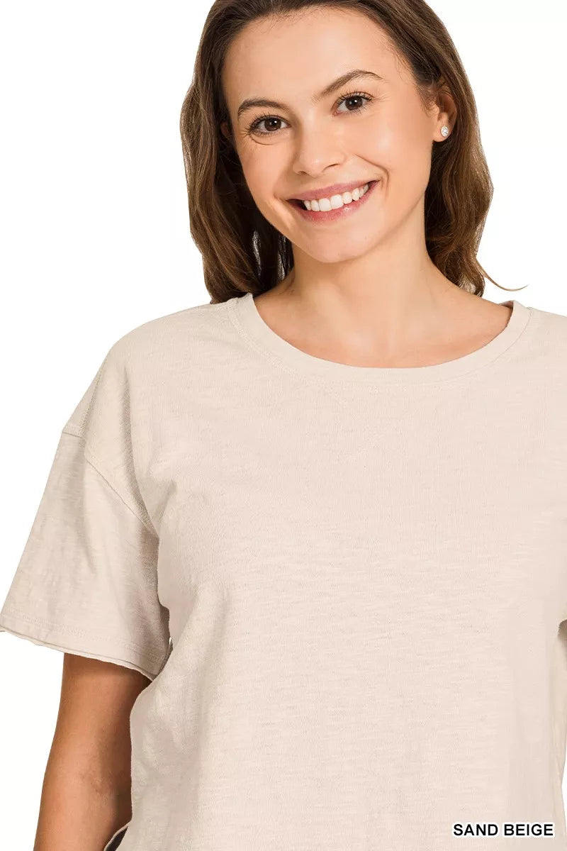 The Cotton Slub Short Sleeve Tee is a versatile and comfortable wardrobe essential. Made from soft cotton slub fabric, this tee offers a relaxed fit for everyday wear. The short sleeves provide a casual look that can be easily paired with jeans, shorts, or skirts. With its classic design and quality construction, this tee is perfect for both lounging at home and running errands. Add this stylish piece to your collection for effortless style and comfort.