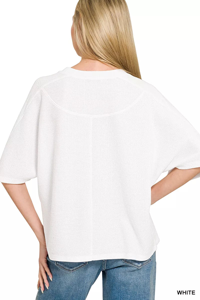 The Double Knit Short Sleeve Top is a versatile and chic addition to your wardrobe. Made from double knit fabric, this top offers both comfort and style. The short sleeves make it perfect for layering or wearing on its own in warmer weather. The classic design and solid color make it easy to pair with a variety of bottoms for different looks. Elevate your everyday style with the polished simplicity of the Double Knit Short Sleeve Top.