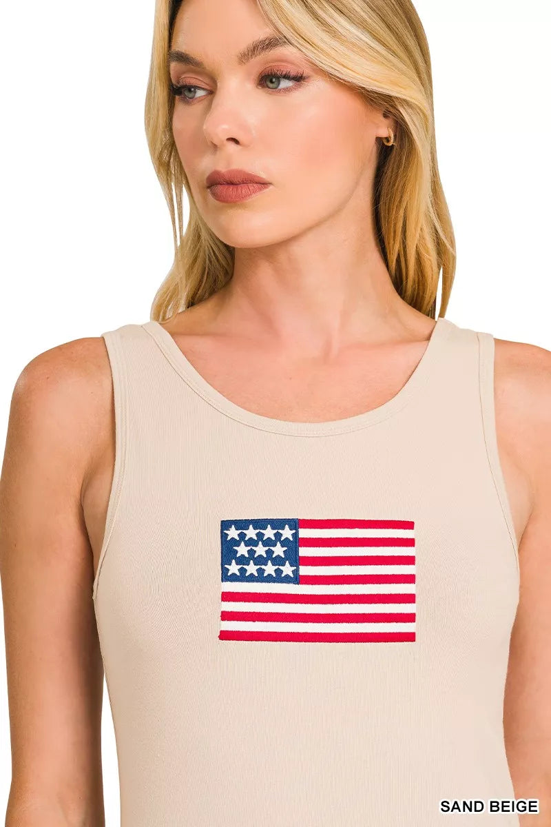 Zenana Double Scoop American Flag Embroidered Tank Top