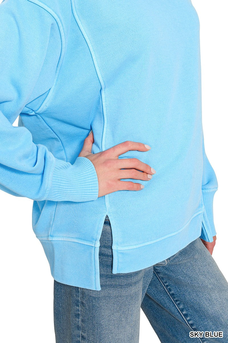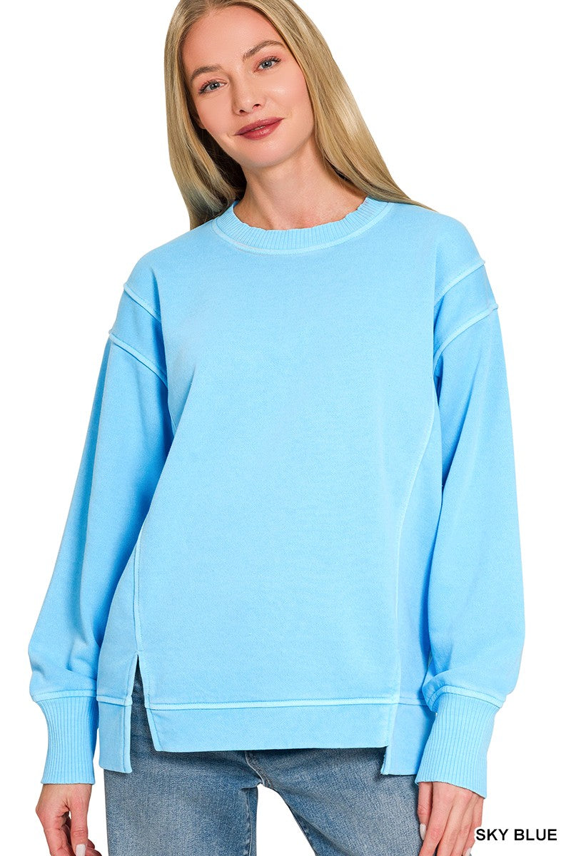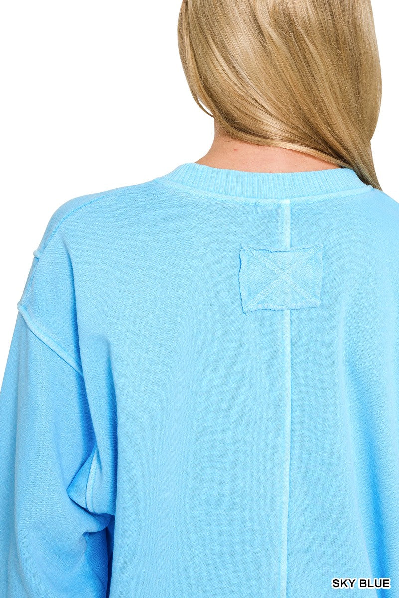 Zenana Pigment Dye Exposed-seam Fleece Sweatshirt