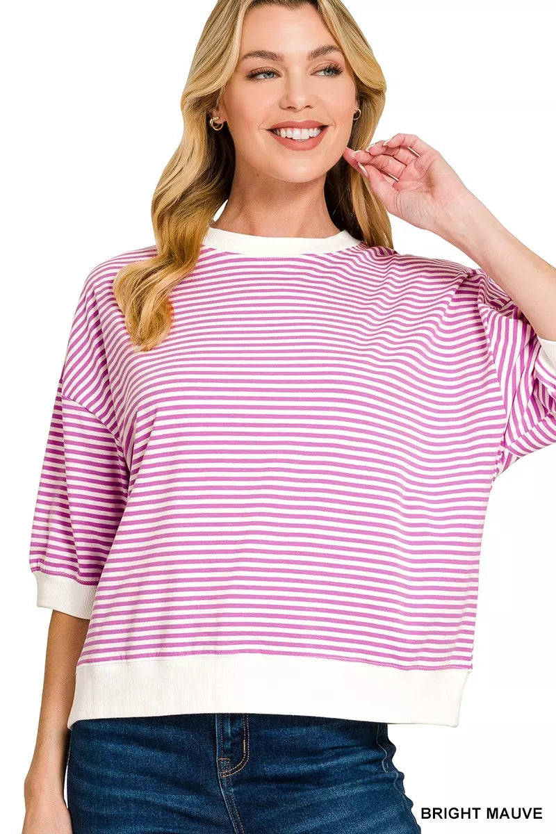 Zenana Striped Contrast Trim Banded Bottom Top